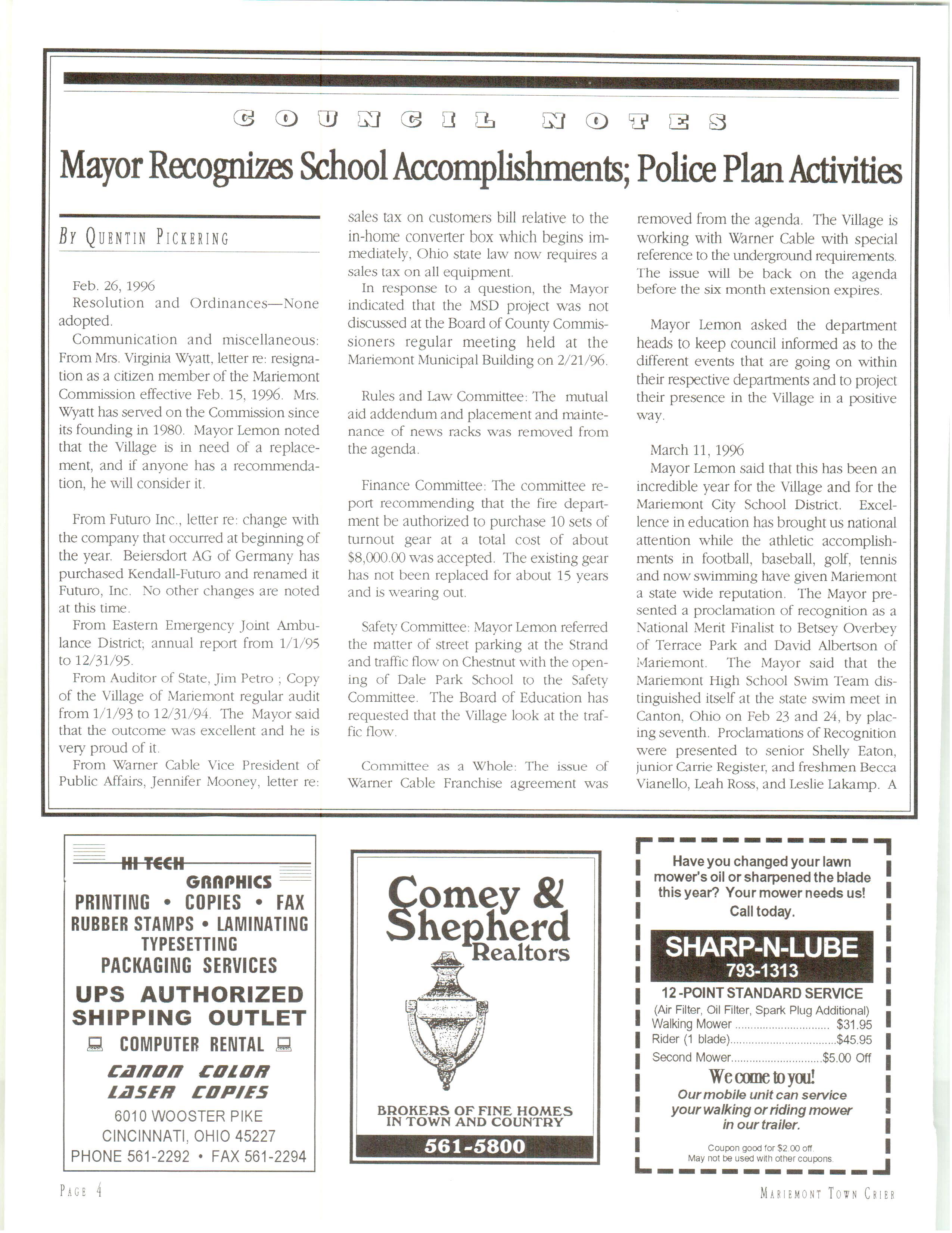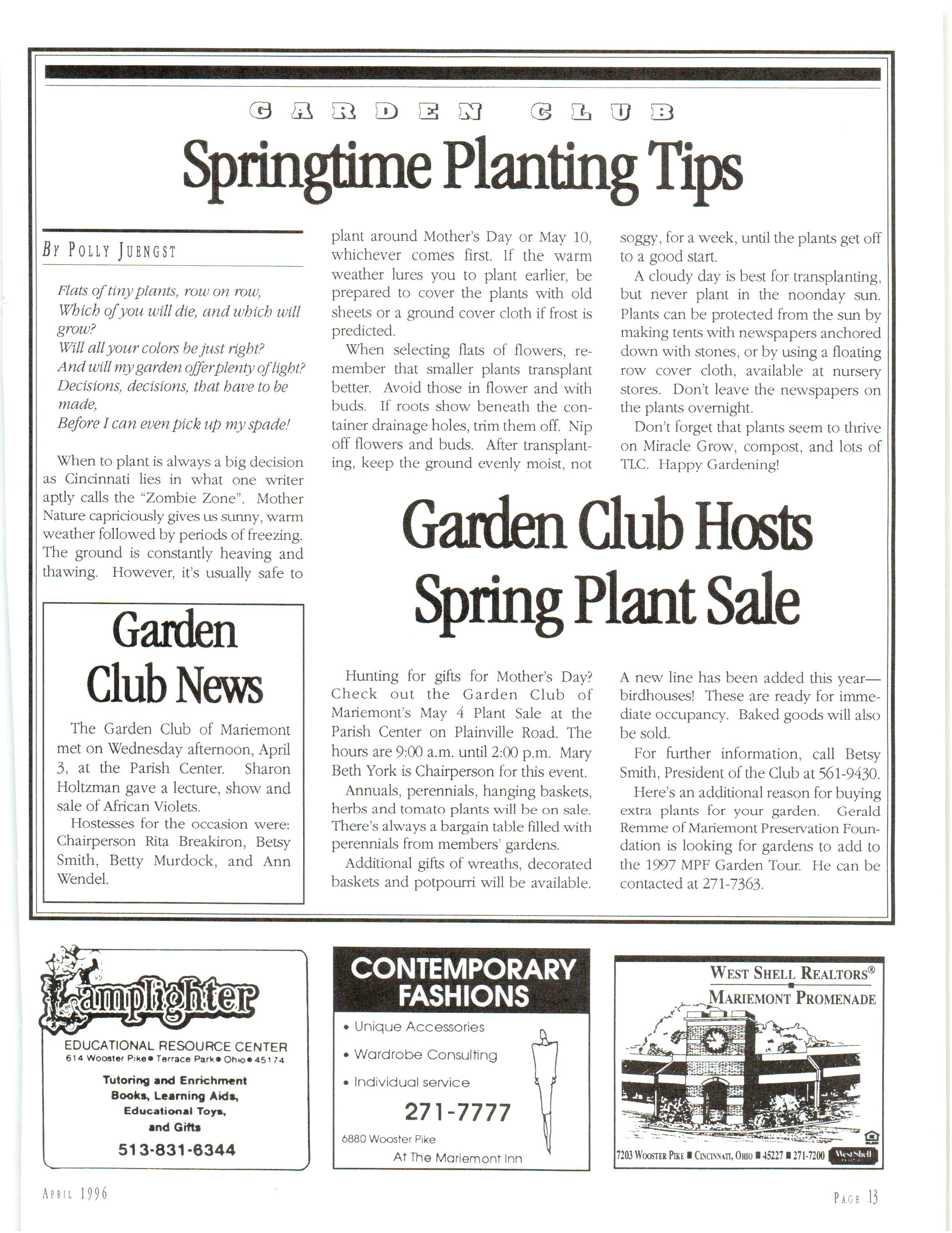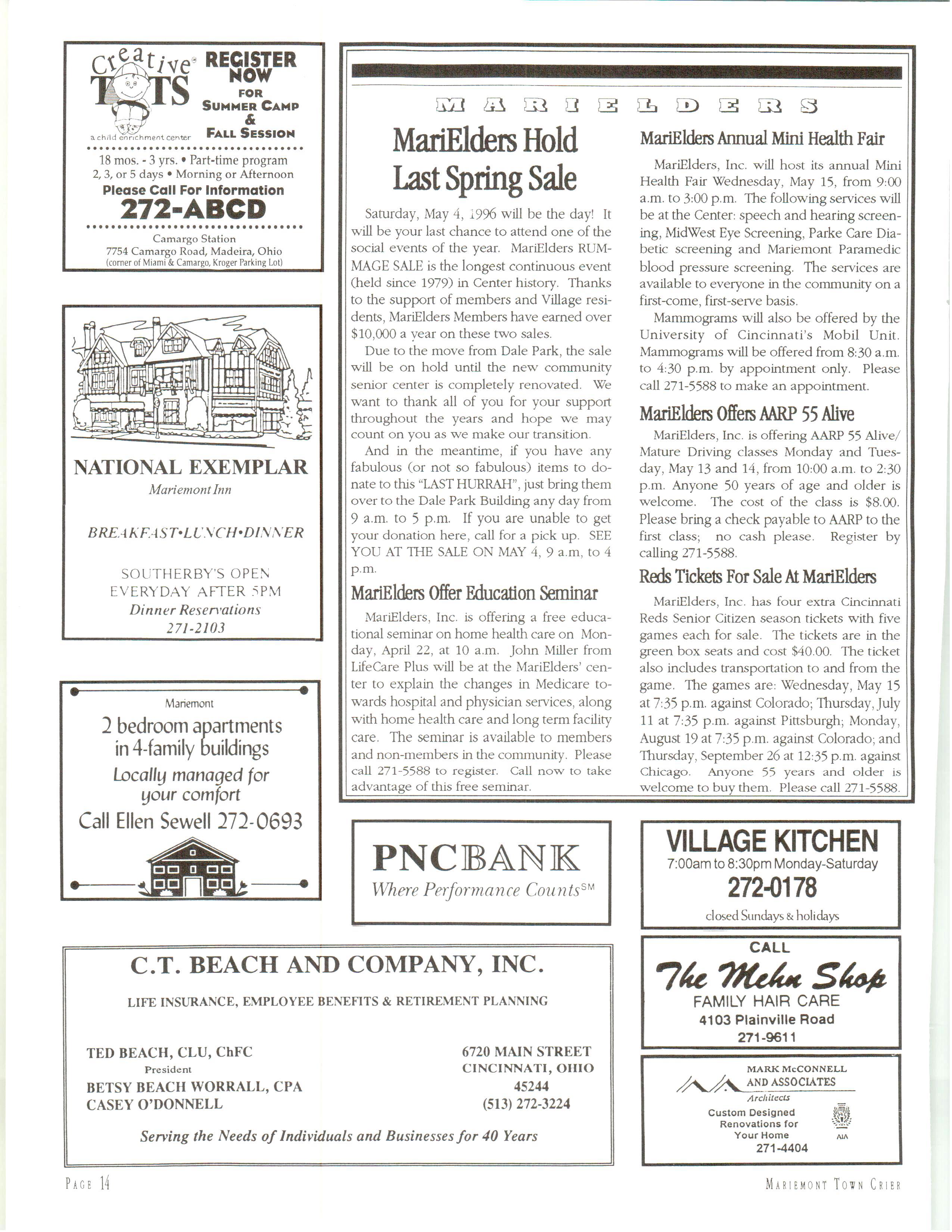 Mariemont Town Crier, April 1996, Vol. 20, No. 7 by Mariemont Town Crier - Issuu