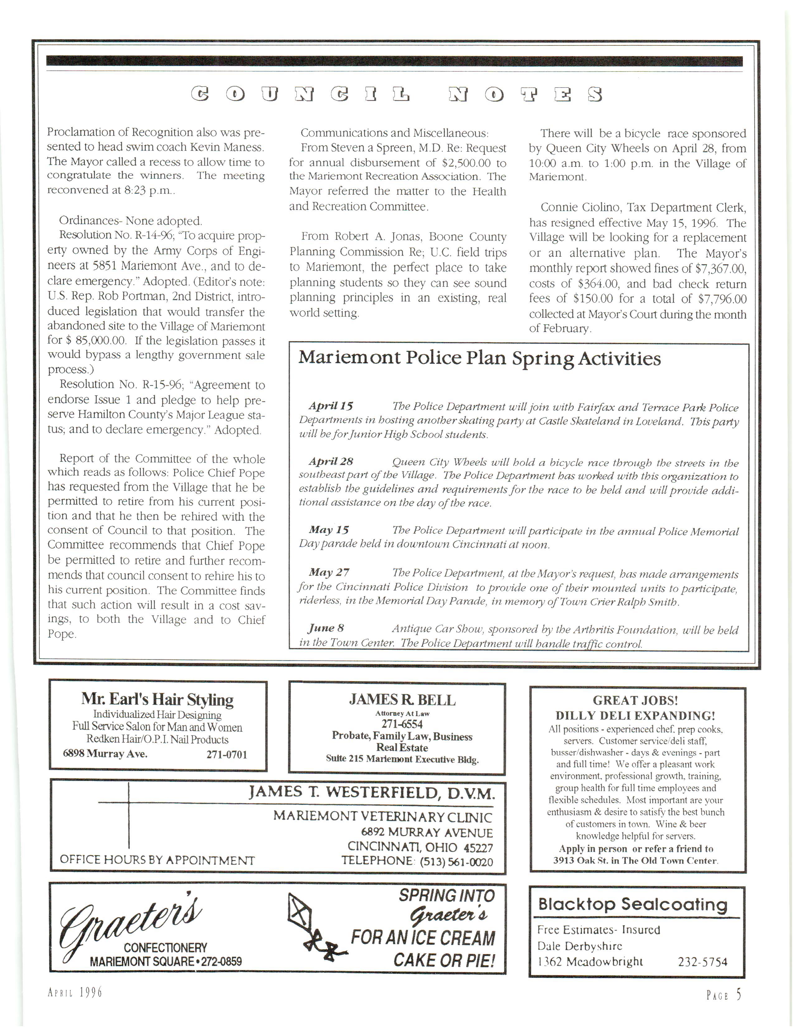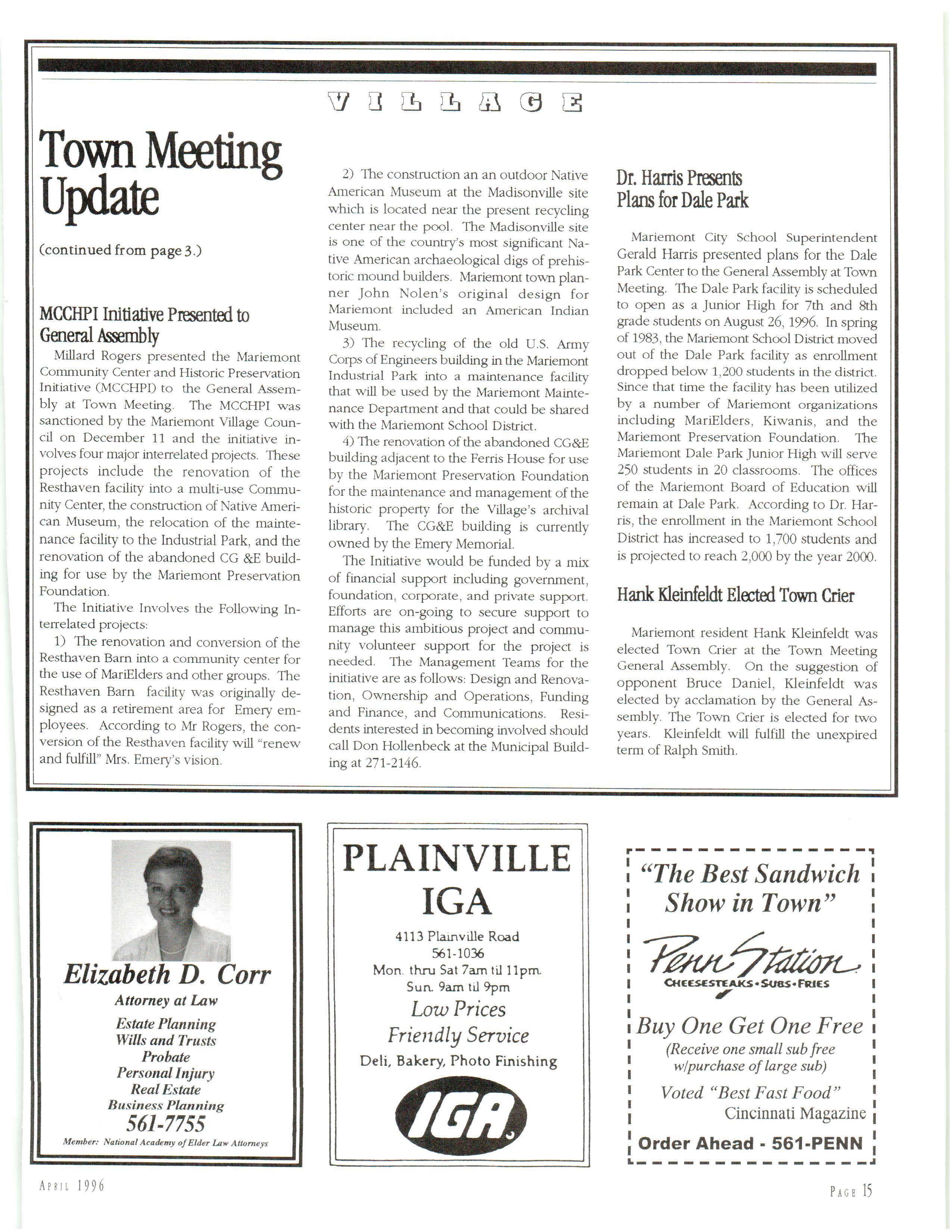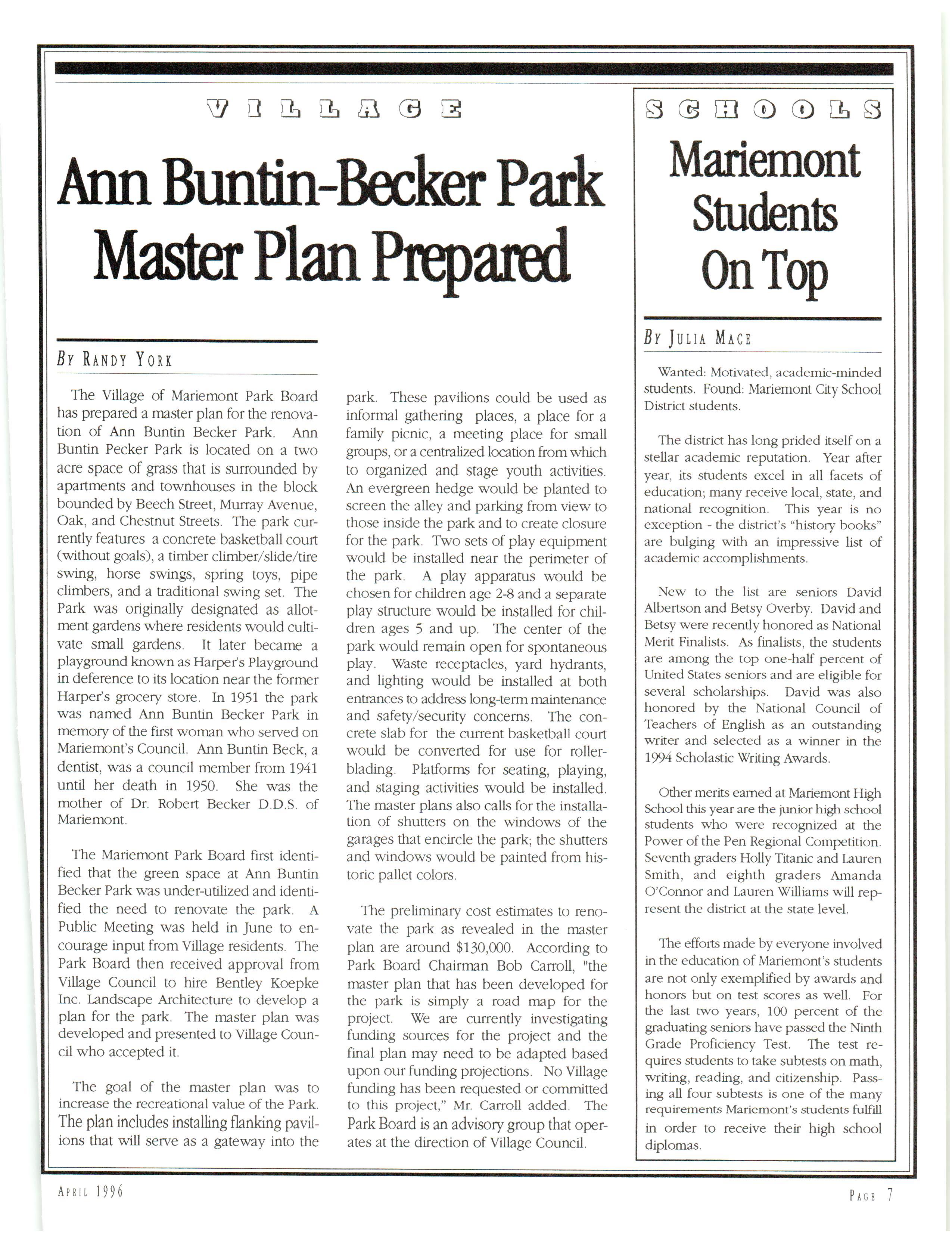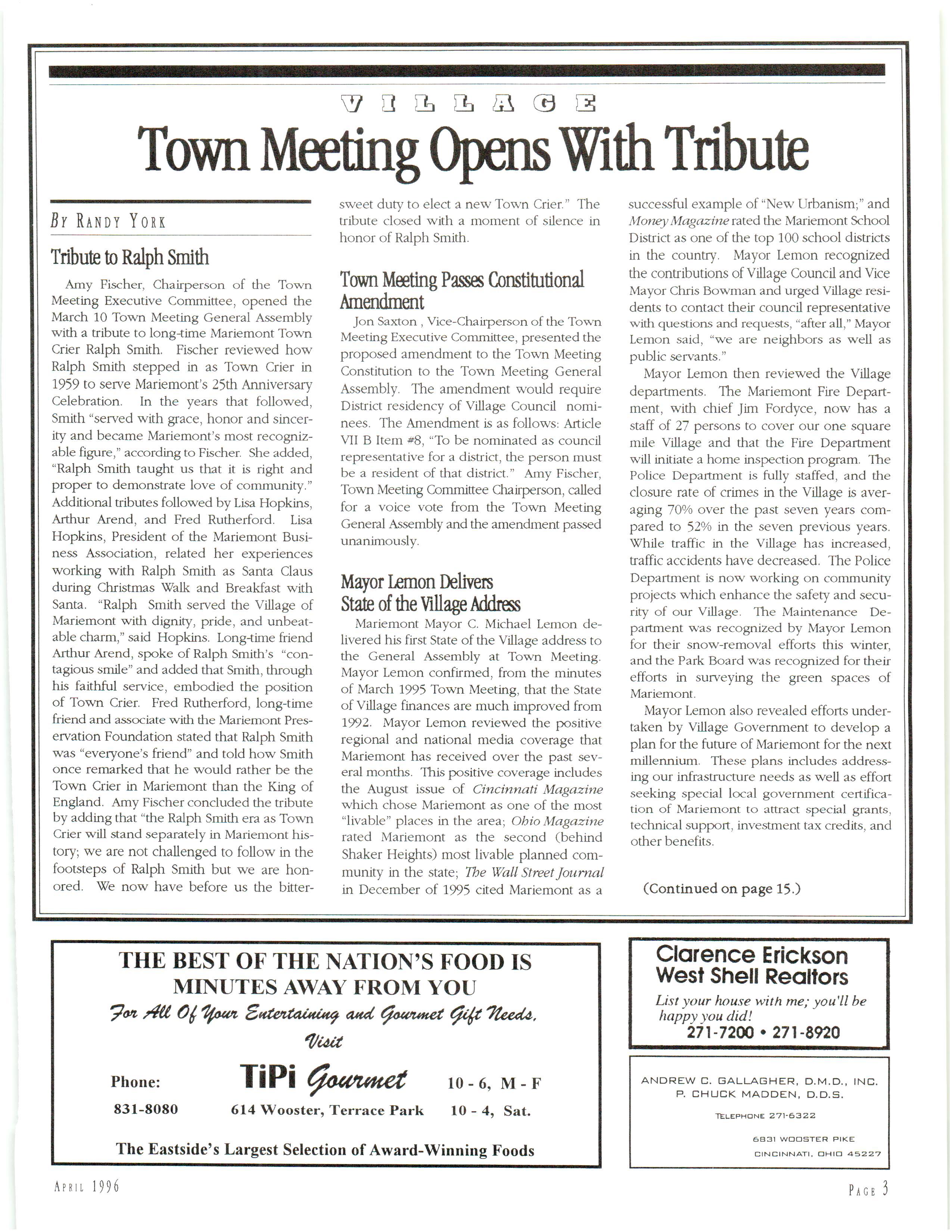Mariemont Town Crier, April 1996, Vol. 20, No. 7 by Mariemont Town Crier - Issuu