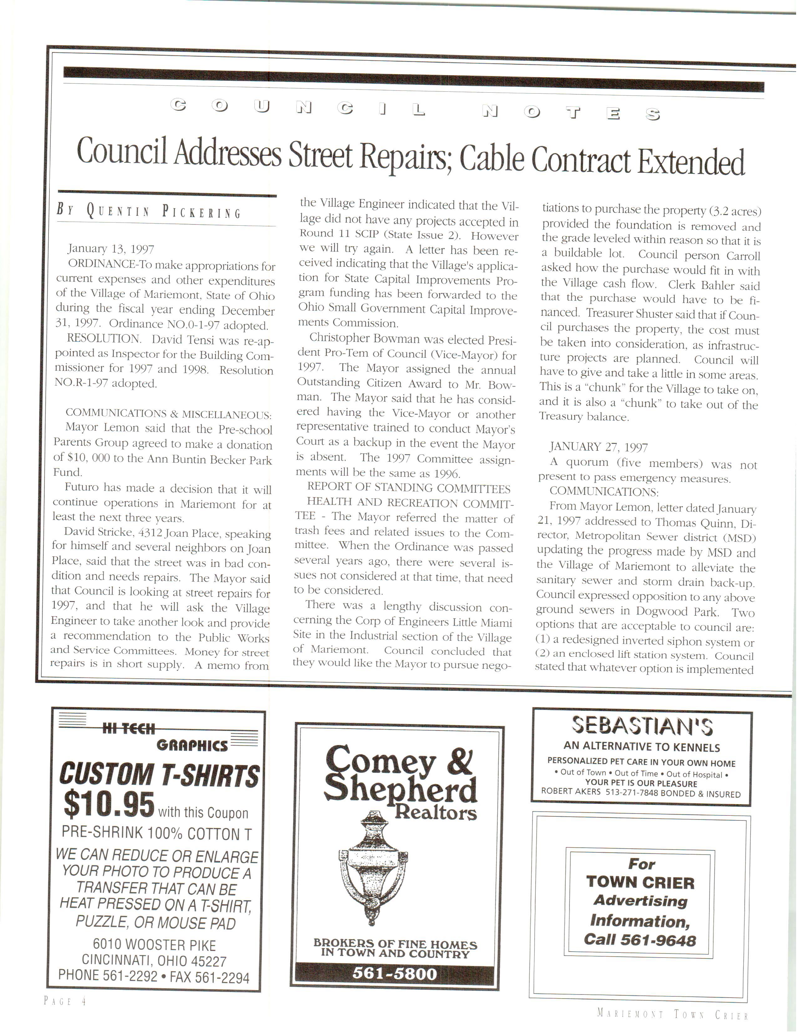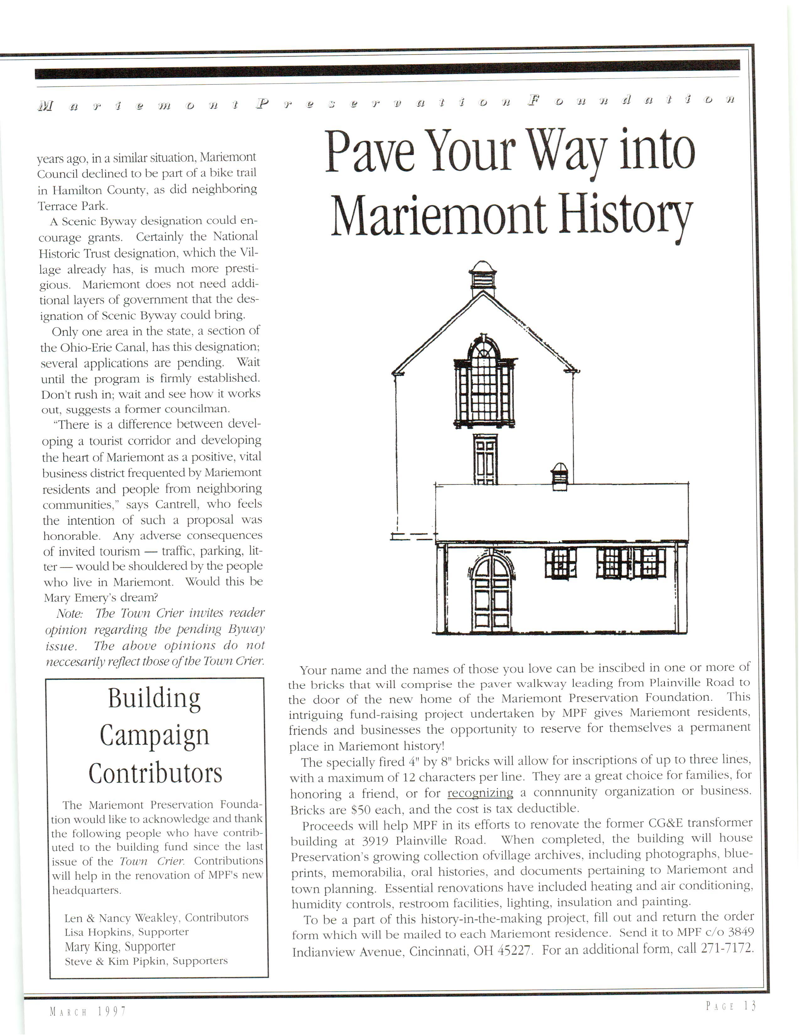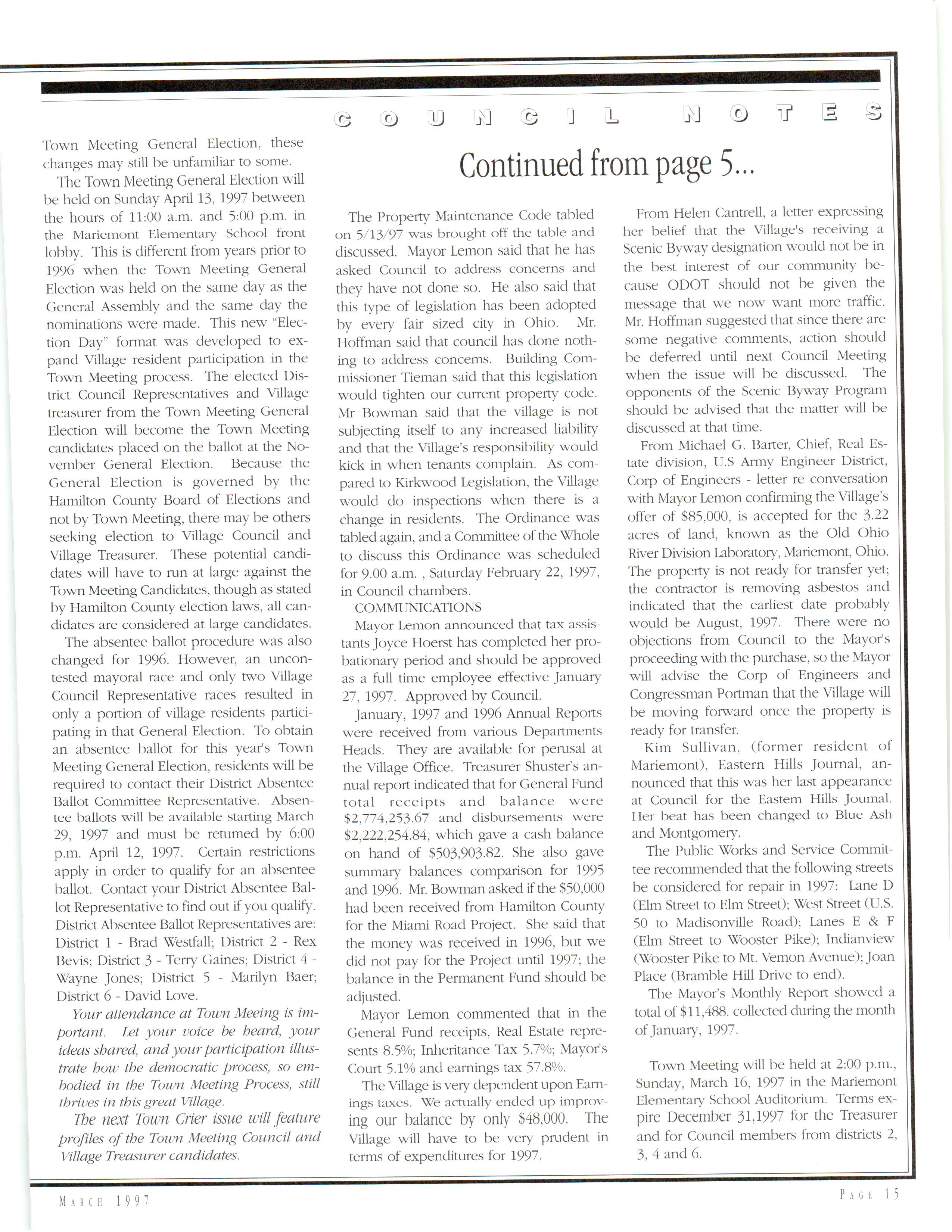 Mariemont Town Crier, March 1997, Vol. 21, No. 6