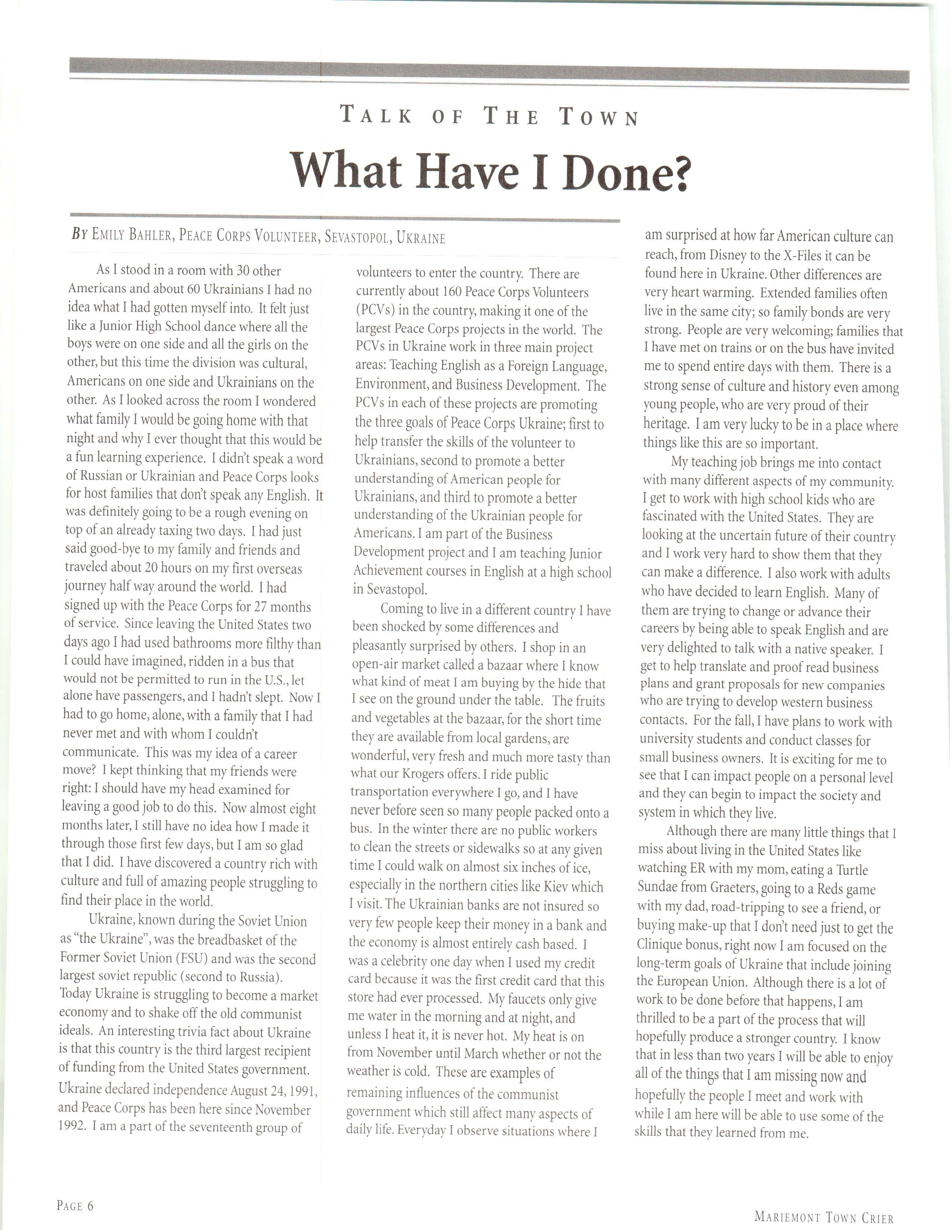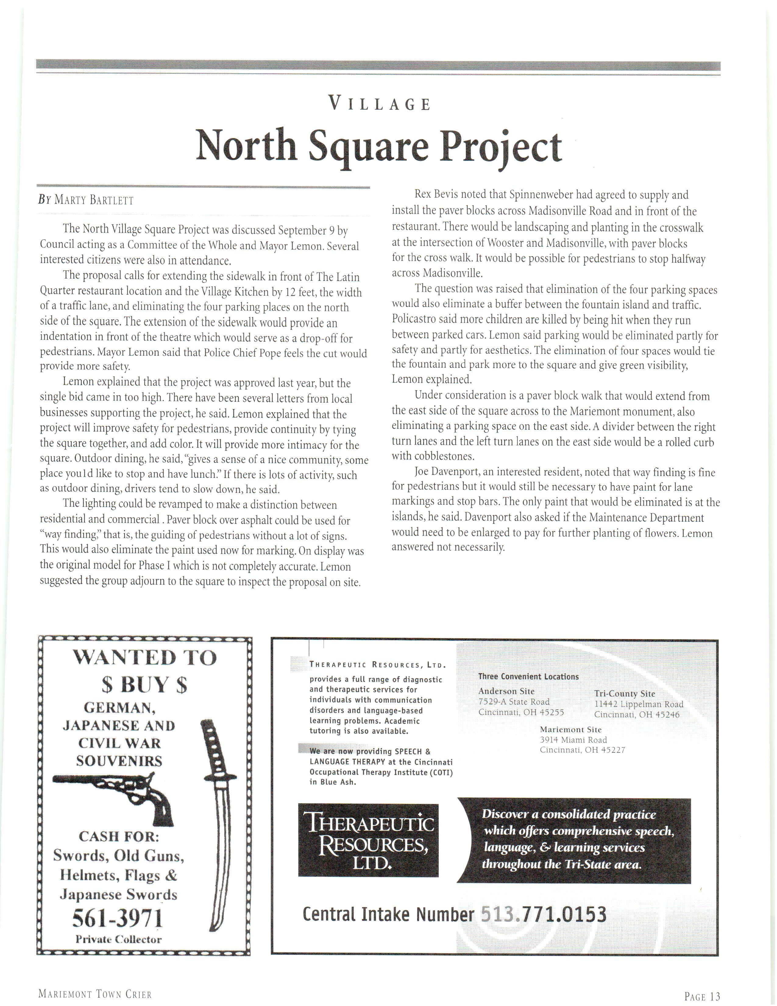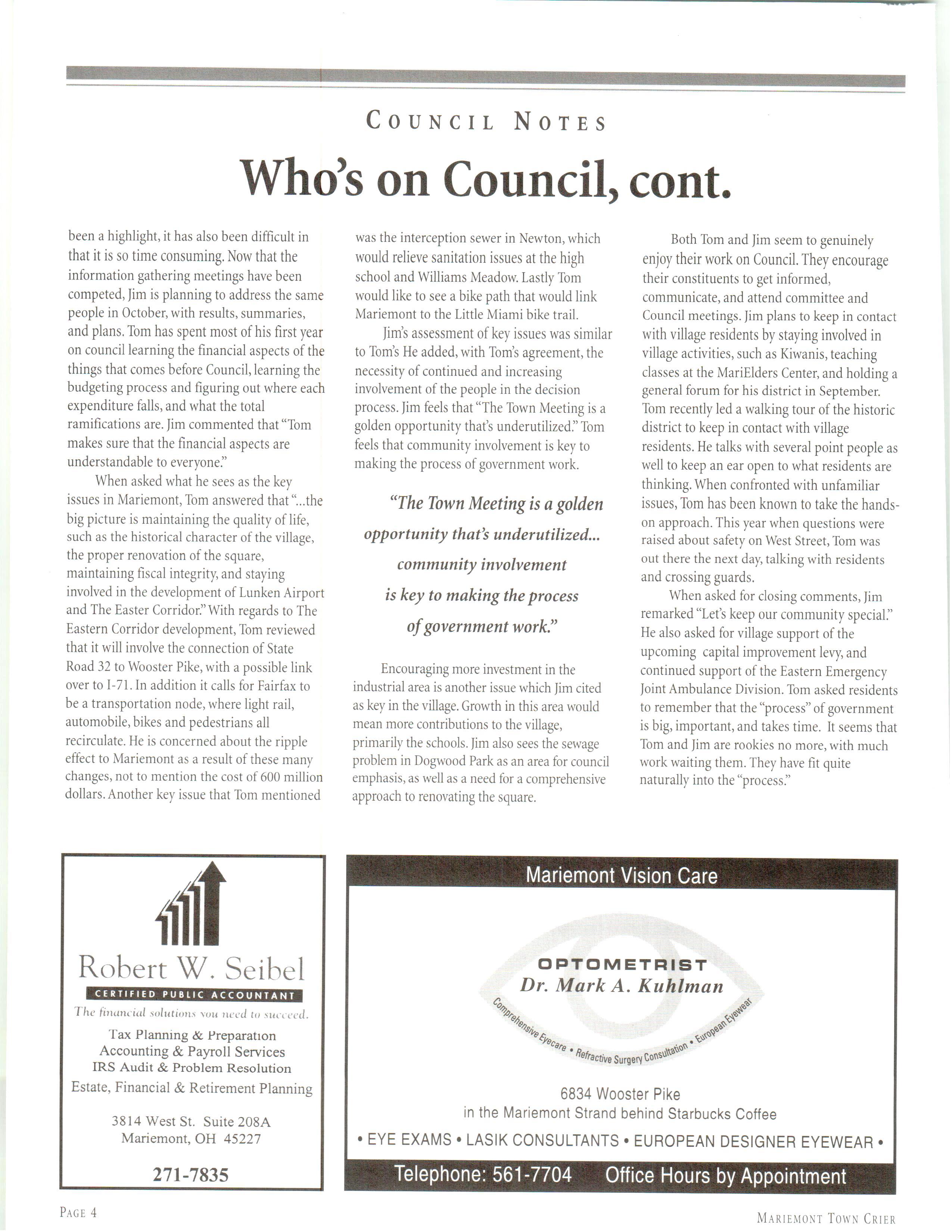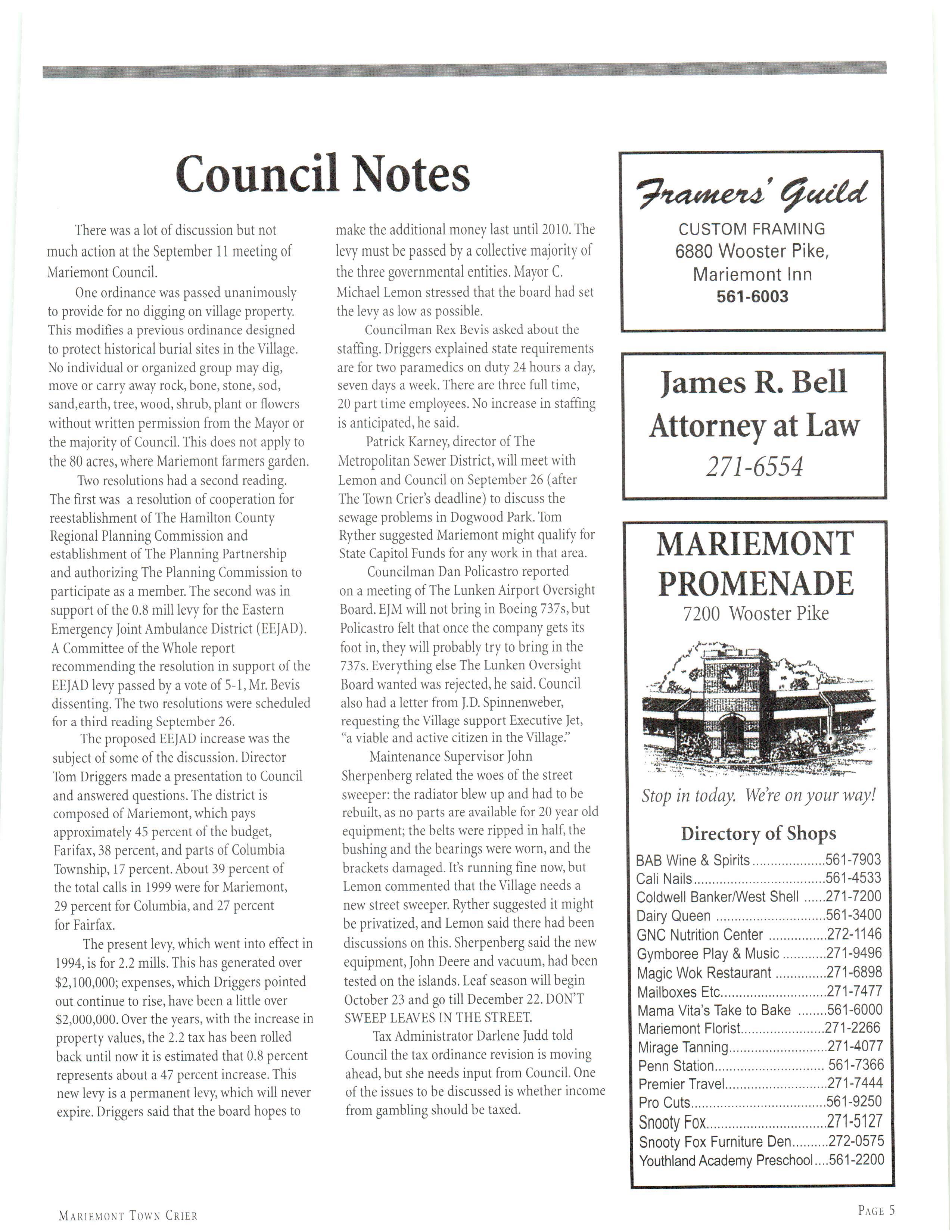 Mariemont Town Crier, October 2000, Vol. XXV, No. 2