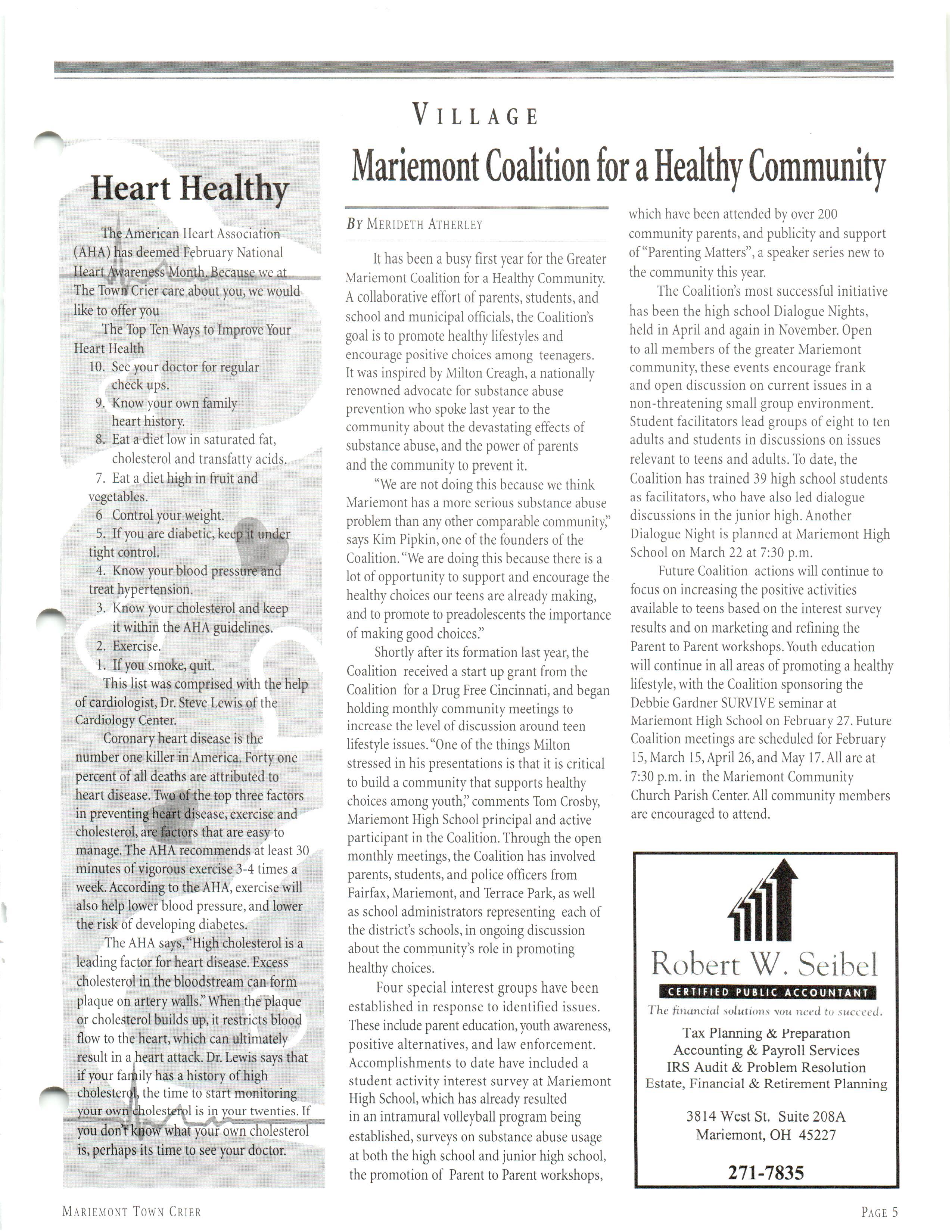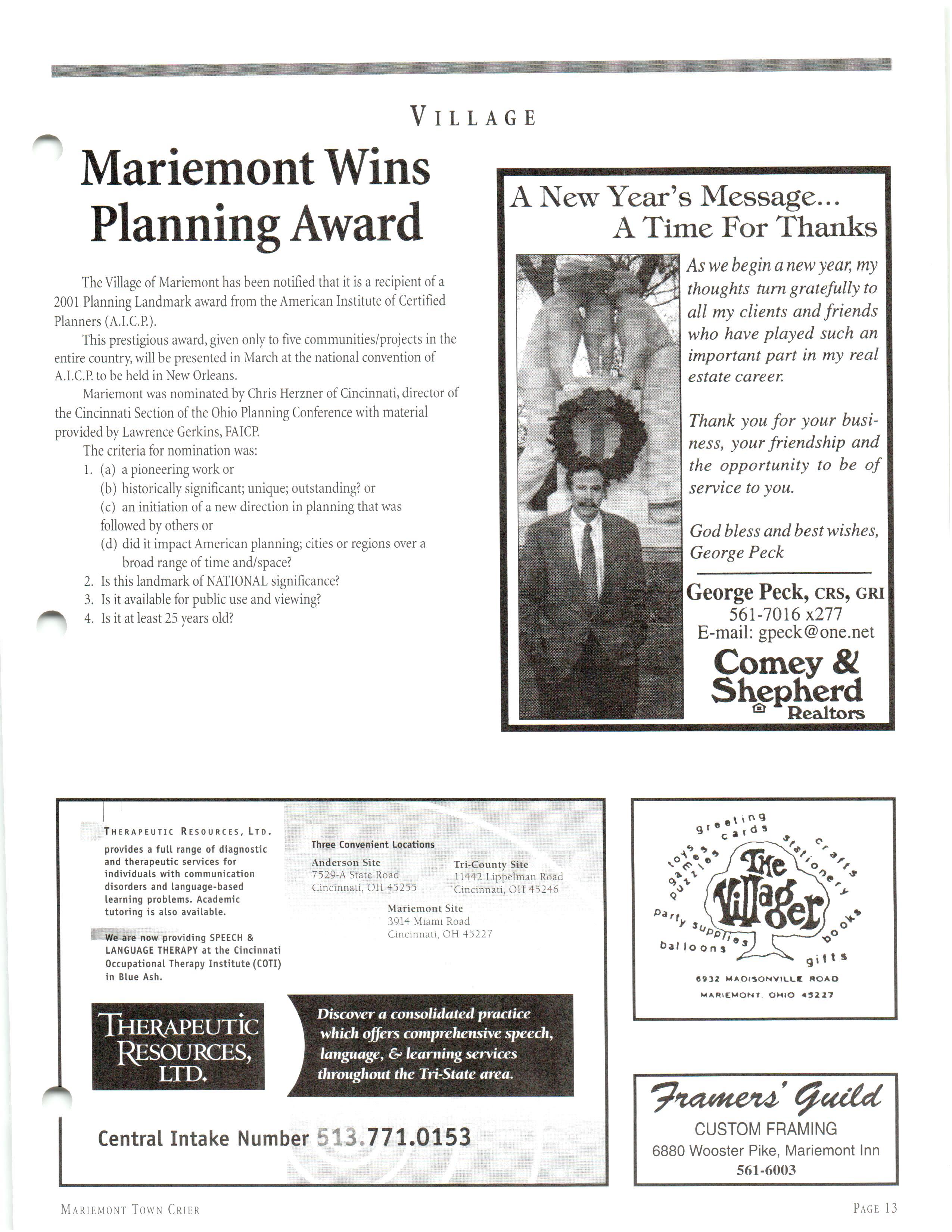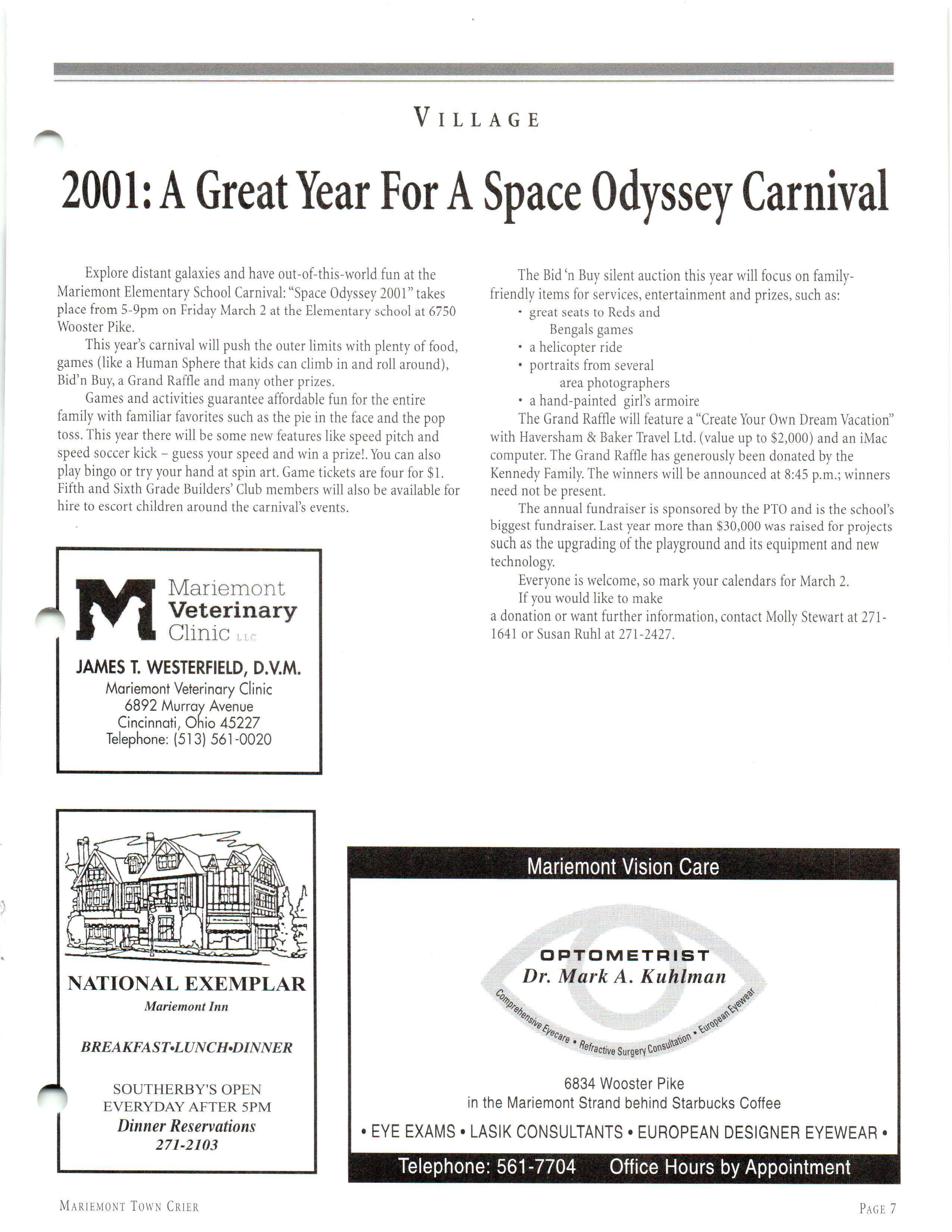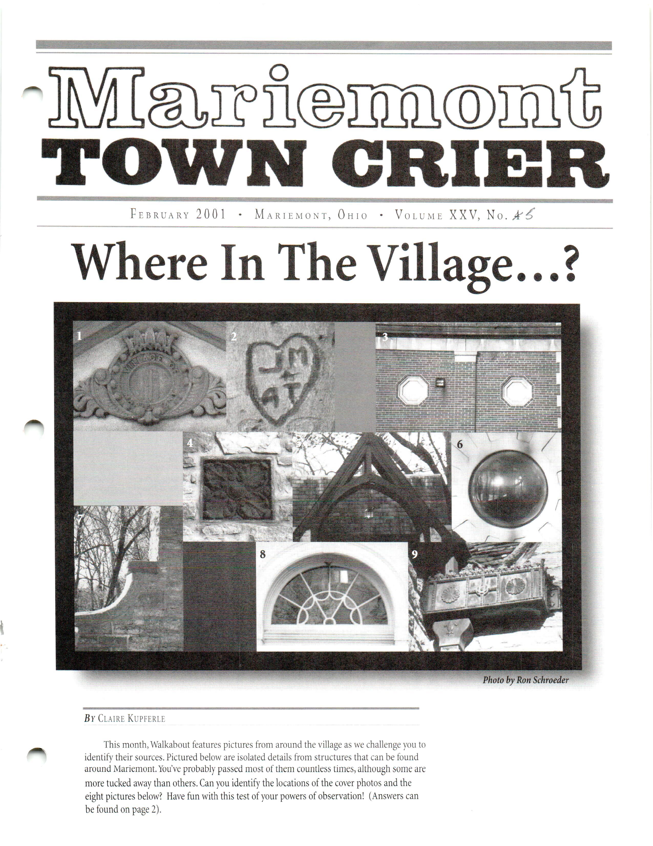Mariemont Town Crier, February 2001, Vol. XXV, No. 5