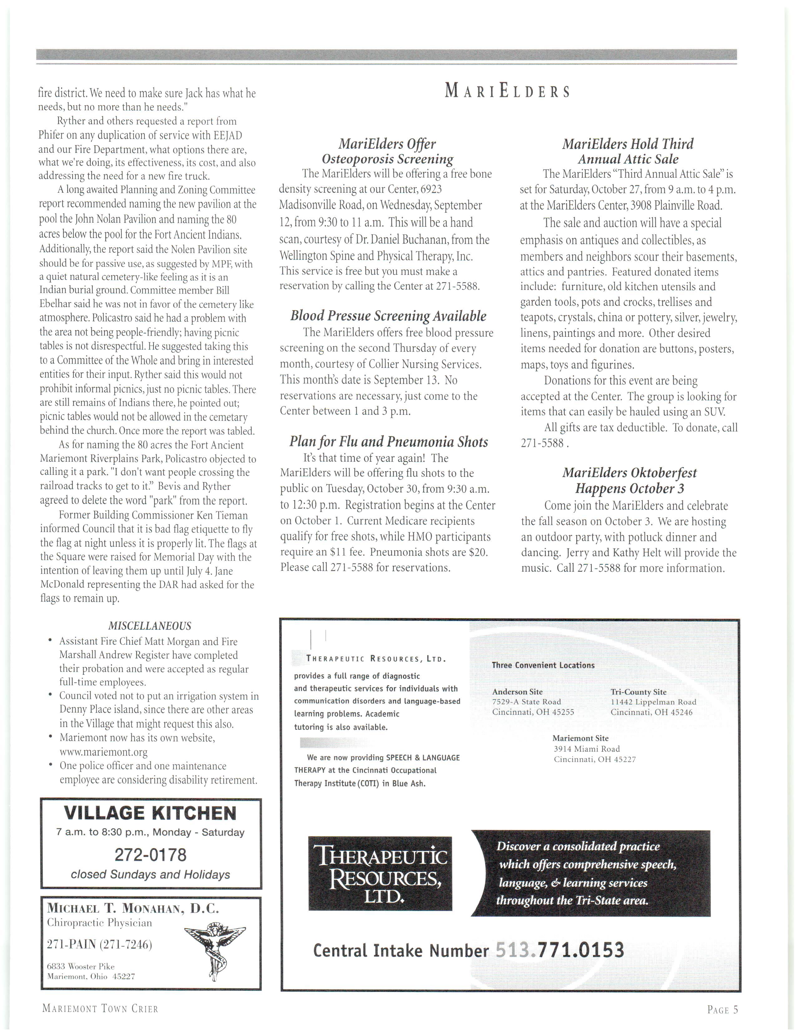 Mariemont Town Crier, September 2001, Vol. XXVI, No. 1 by Mariemont Town Crier - Issuu