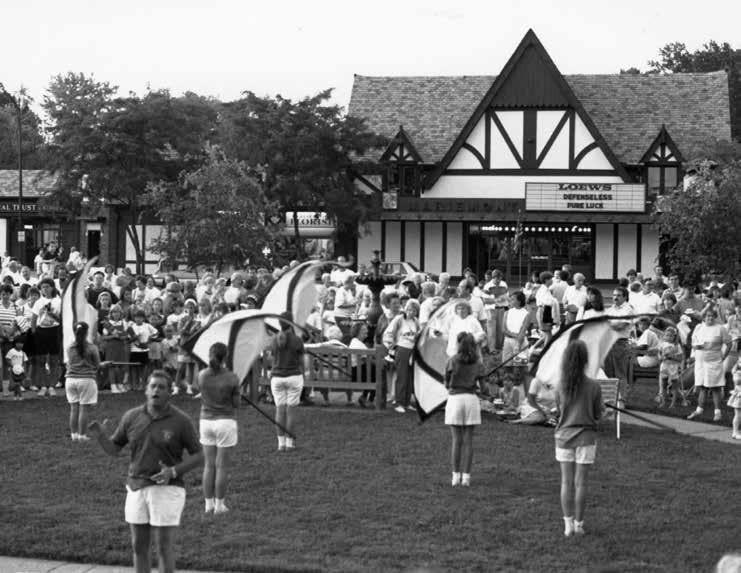 sunken English garden known as the Summer Garden. Visitors to The Summer Garden on weekend evenings were treated to outdoor movies and music by local orchestras with a covered, elevated dance floor in the middle. During the winter, the dance floor was transformed into an ice skating rink. As the Inn and the Village of Mariemont grew in popularity, more parking was necessary, so