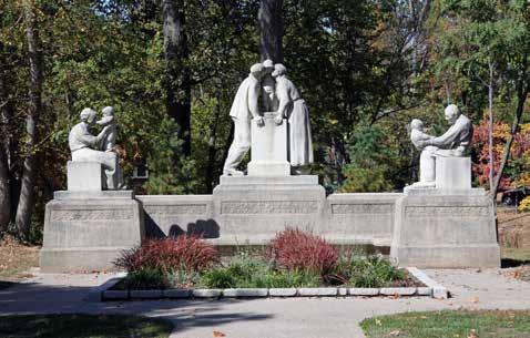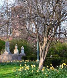 Gracing the covers of this publication and In the midst of Mariemont’s Town Square, you’ll find a fountain that was designed by Mariemont resident Karen Monzel in 1991 for the 50th anniversary celebration of the Village’s incorporation. The Mariemont Garden Club adopted the daffodil as the official flower of Mariemont, so bunches of daffodils decorate the fountain’s base and pedestal. The fountain is two-tiered brass sculpture with daffodil details through the design. The fountain sculpture was designed in the rich English tradition of Mariemont architecture and money for the project was donated by the Thomas J. Emery Foundation. The fountain is bronze to insure its lasting until the 100th anniversary of Mariemont’s incorporation and beyond.