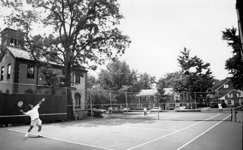 The original intent of the recreation center was to provide space for both active sports and relaxation. The plans called for the recreation building, but also for six tennis courts, a swimming pool with a white sand beach and a stadium and field for football and other outdoor recreation. The stadium was to be built in the area behind the Parish Center and school. The pool and beach were never built, although the tennis courts remain.