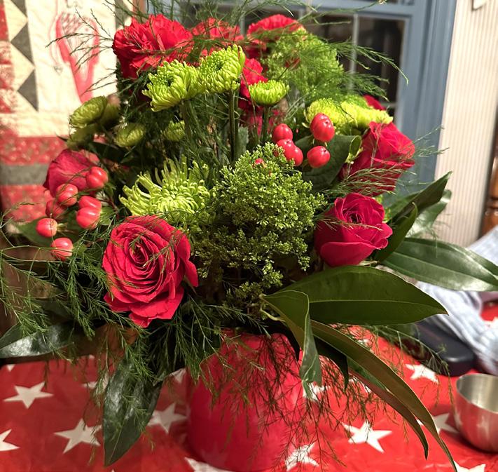A beautiful and festive holiday arrangement by the Garden Club of Mariemont!