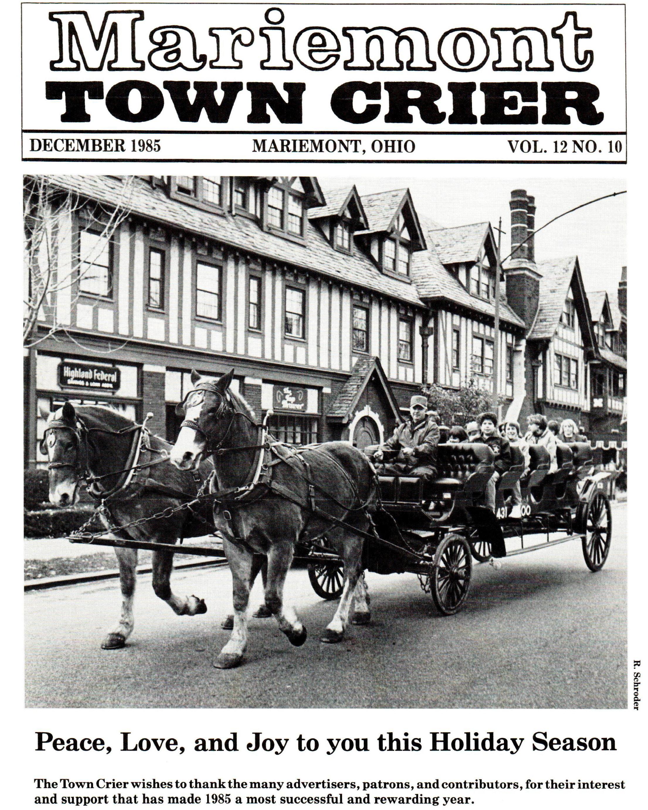 Happy Holidays to all! I want to thank those who have reached out with appreciation and support for what our Town Crier staff and junior couriers do each month to bring current Mariemont events and news, history, area business spotlights and advertising, fun stories and puzzles, and more to each resident and business patron in the community.