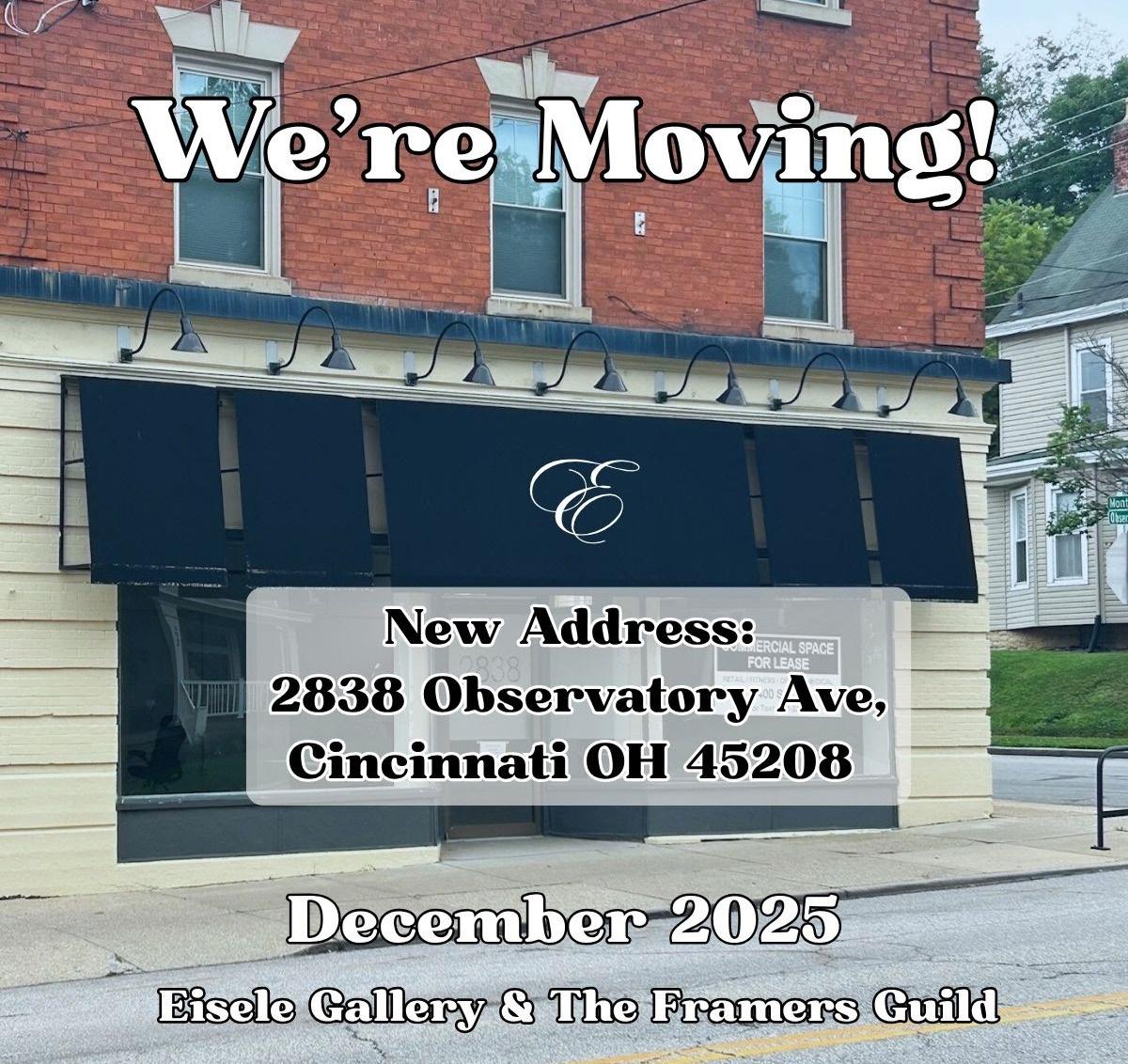 Our NEW Address is 2838 Observatory Ave, Cincinnati OH 45208. You can also reach us by email at info@eiselefineart.com or call (513) 791-7717.