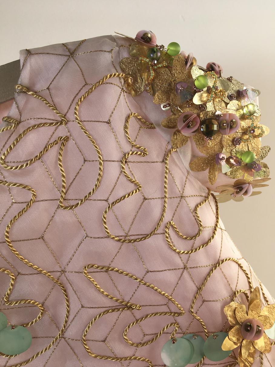 Een grote liefde van mij is Broderie d’Art. Het is een samensmelting van technieken en materialen die o.a. gebruikt worden in de wereld van de haute couture. Om mij de kneepjes ervan eigen te maken volgde ik een jaarprogramma, waarna ik geproefd heb van de modewereld.