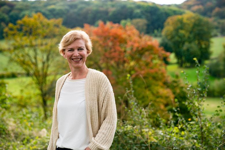 Het lopen kun je ook letterlijk nemen, want ik geef ook af toe wandel coachings. En zo is er ook mijn ultieme vrije dag. Dan wandel ik het liefst. Ik sta dan vroeg in de ochtend op. Het is dan nog stil, fris en puur. Soms begin ik dan mijn dag met een stuk Limburgse vlaai. Ik ben een echt zoetekauw. Je kunt er me zelf voor wakker maken. Eet ik geen vlaai bij het ontbijt, dan neem ik wel een stuk mee voor onderweg. Je kunt me dan een hele dag vinden in het Heuvelland, de Voerstreek of de Ardennen. Het geeft mij rust, ontspanning en een gevoel van vrijheid Ik vind het net zo aangenaam om alleen te wandelen als samen met iemand Ik geniet van de kleine dingen onderweg en de omgeving Wandel ik samen met anderen dan zijn die gesprekken ook een zaligheid Regelmatig organiseer ik ook een caminotocht Of stiltewandelingen Samen met anderen ervaren wat die stilte met je doet Hoe bijzonder dat is De verbinding die je dan met jezelf en de natuur maakt, het is wonderlijk In mijn praktijk ontmoet ik sensitieve vrouwen die nood hebben aan verbinding Zowel met hun gevoel als met de natuur Ze zijn vastgelopen in hun leven, loopbaan of eigen onderneming Vanuit een holistische visie zie ik hen als mens in zijn geheel
