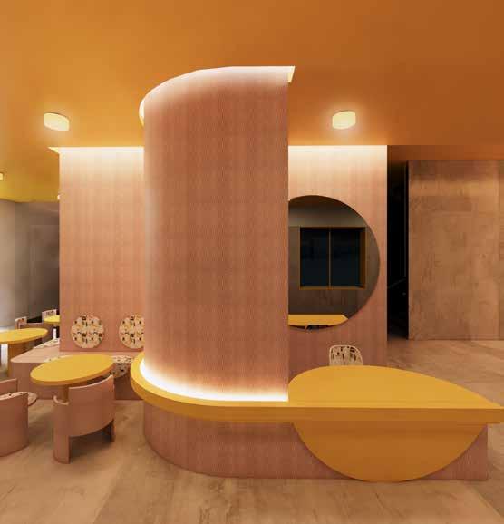The agate pearl is located in the oldest neighborhood in Boston, on Charles street. The interior of the agate pearl is in contrast to the traditional style brick row houses. With bright colors and modern simple geometric and organic forms, it is a place where the old meets the new Charles Street is a popular shopping area and is surrounded with several fashionable stores, a library with an art gallery and many restaurants and pubs. With more than half of Beacon Hill’s population being younger adults, The agate pearl is meant to be a place for them to connect with tourists visiting the place, local workers and college students. It is a comforting, playful atmosphere that’s inviting and distinct. People travel to experience something new or revisit somewhere they love to be. The agate pearl provides a fresh experience to locals and a unique story of Boston to tourists. With so many prestigious academic institutions in Boston, it can be a stressful place. Colors such as calming Moroccan pink and bright yellow are bringing a relaxing feeling.