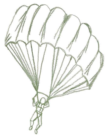 The suspended parachute ceiling detail highlights the store’s branding and the main inspiration behind the identity.