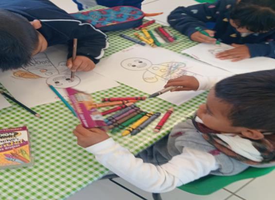 Al ingresar los niños se sorprendieron al ver alaspracticantes nuevamenteyalgunoslas abrazaban de la emoción de volverlas a ver, una vez estando todos los niños se dio inicio a la clase iniciando con una pausa activa en donde bailarán los niños al ritmo de una canción para después continuar explicando el nuevo proyecto que se realiza estos días de tal manera que los niños tengan conocimiento de que irán aprendiendo y ellos puedan ir recordando información que se asimile a lo que ven, cada salón, contaba con actividades diferentes adaptadas a las necesidades observadas en los salones durante la primera jornada y con ayuda de la lectura de la realidad con el fin de poder lograr el aprendizaje necesario para ellos.