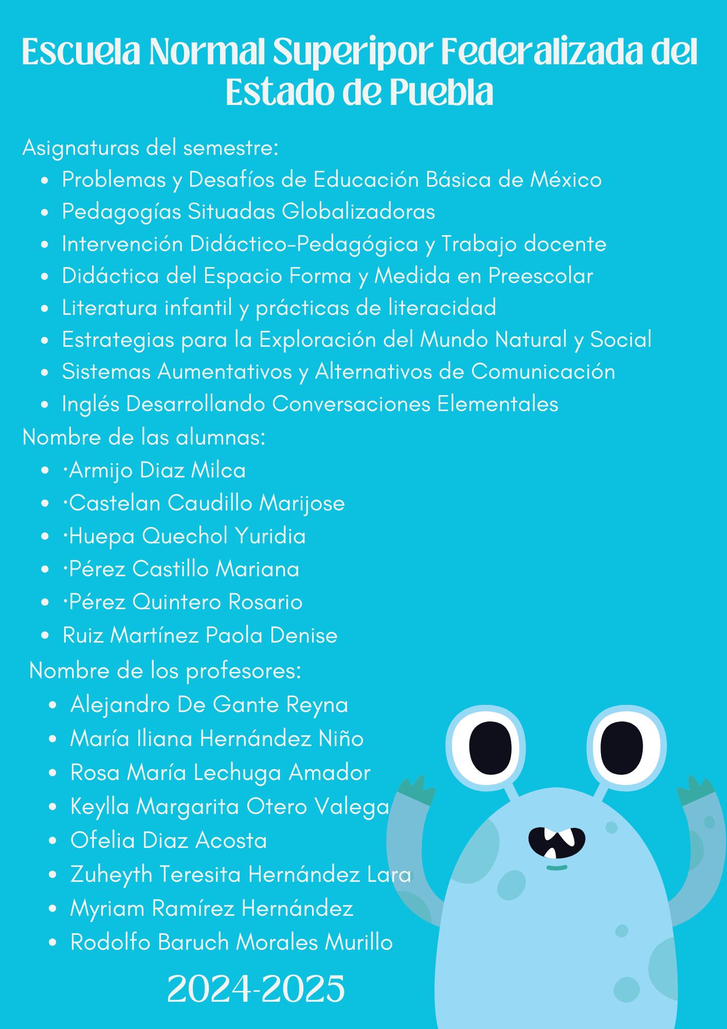 Partiendo de la reflexión del filósofo Joseph Joubert, quien afirma que "enseñar es aprender dos veces", se presenta el presente artículo que da a conocer nuestra experiencia pedagógica en el Jardín de Niños "María Curie", ubicado en la comunidad de Los Reyes Tlanechicopan, específicamente en la calle Benito Juárez número 7, municipio de San Jerónimo Tecuanipan. Esta experiencia se llevó a cabo entre el 25 de noviembre y el 6 de diciembre, periodo durante el cual se implementaron actividades orientadas al desarrollo de lenguaje de los NN.