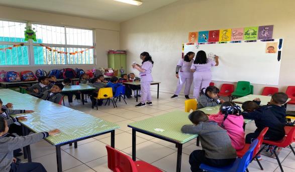 de prácticas en donde las asignaron con su docente titular y como estuvieron divididas en cada uno y con una sonrisa se dirigieron al salón en donde fueron recibidas por un murmullo de voces infantiles, algunos niños se quedaron sorprendidos a lo que comenzaron a preguntar a las practicantes ¿Como te llamas? ¿Por qué están aquí? ¿Ese es tu uniforme? ¿Cuánto tiempo van a estar con nosotros? para conocerlas mejor.