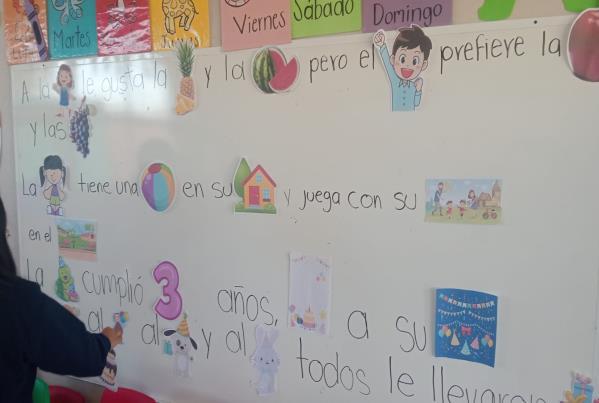 Entrelasactividadesrealizadassellevóa cabolalecturadepictogramas,paraesto se realizaron tres textos, el primero fue unaoraciónsimpleysehicieronotrosdos subiendo cada vez más la dificultad, despuésselesexplicóalasylosalumnos qué eran textos acompañados de imágenes para facilitar la lectura ya que solamente con las imágenes se puede descifrar qué es lo que se quiere comunicar.