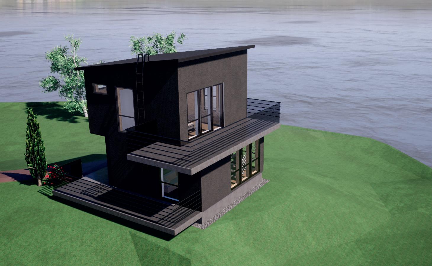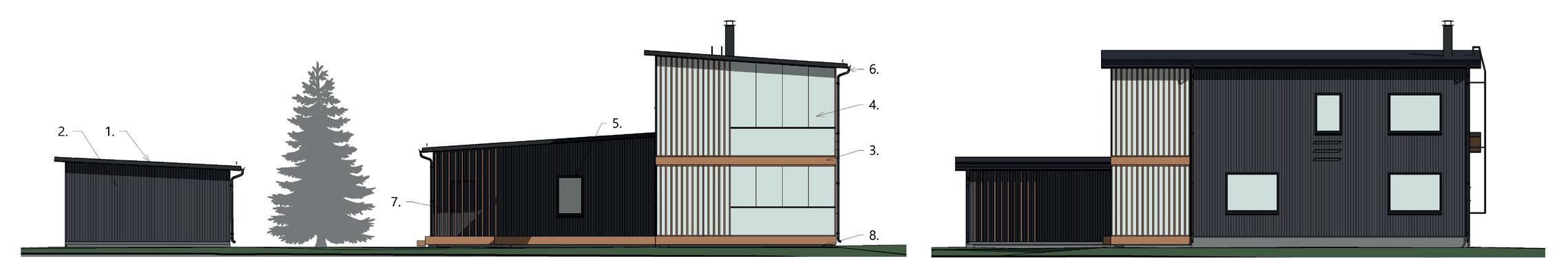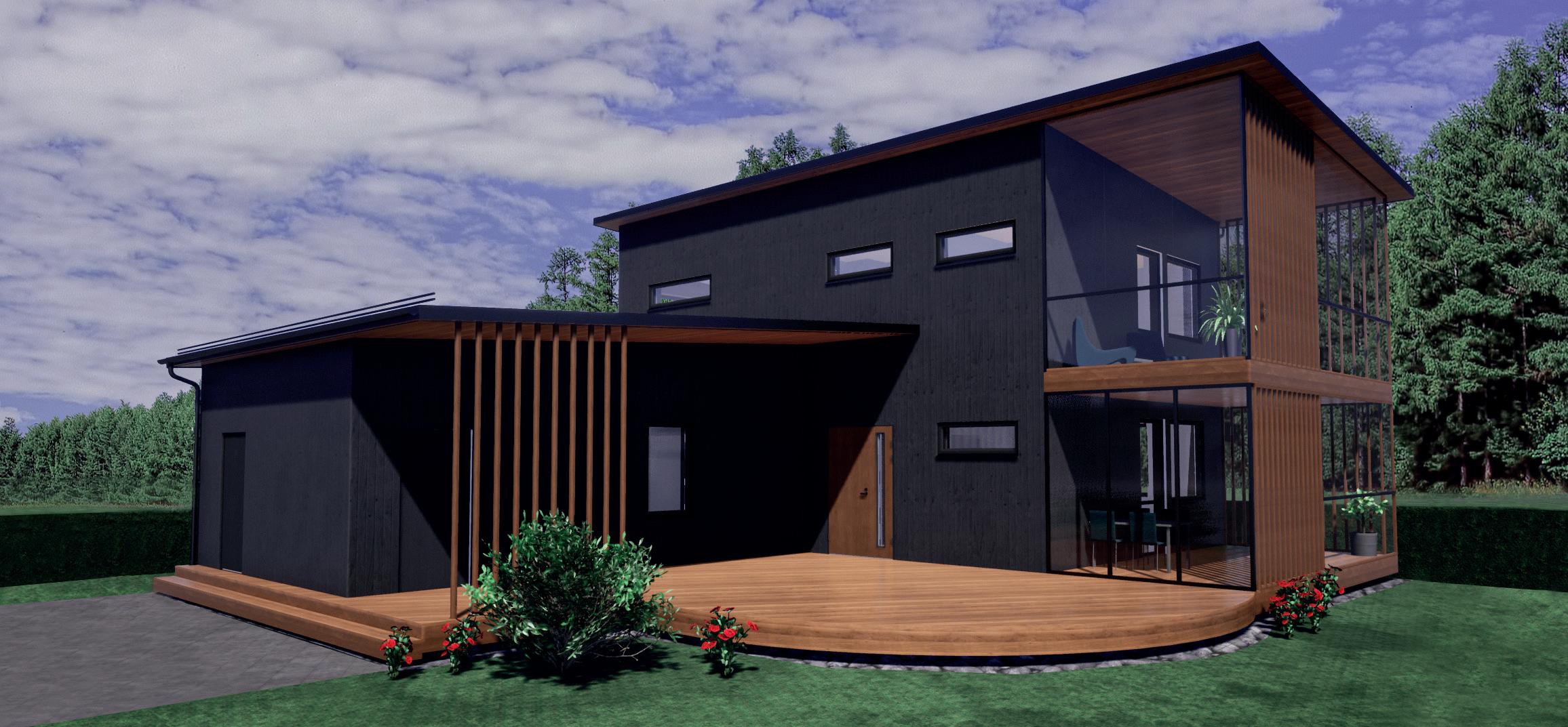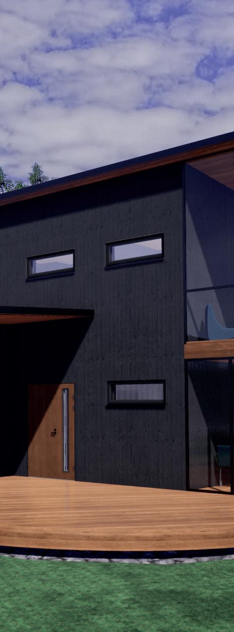 Rakennussuunnittelun perusosaamisen kurssilla tehtävänä oli suunnitella pientalo rakennuttajan toiveiden mukaan. Lähtökohtina rakennuttajilla olivat muun muassa kaksi kerrosta, tumma puuverhous, pulpettikatto sekä lasitettu parveke, jonka alapuolella lasitettu terassi sekä musiikkistudio.