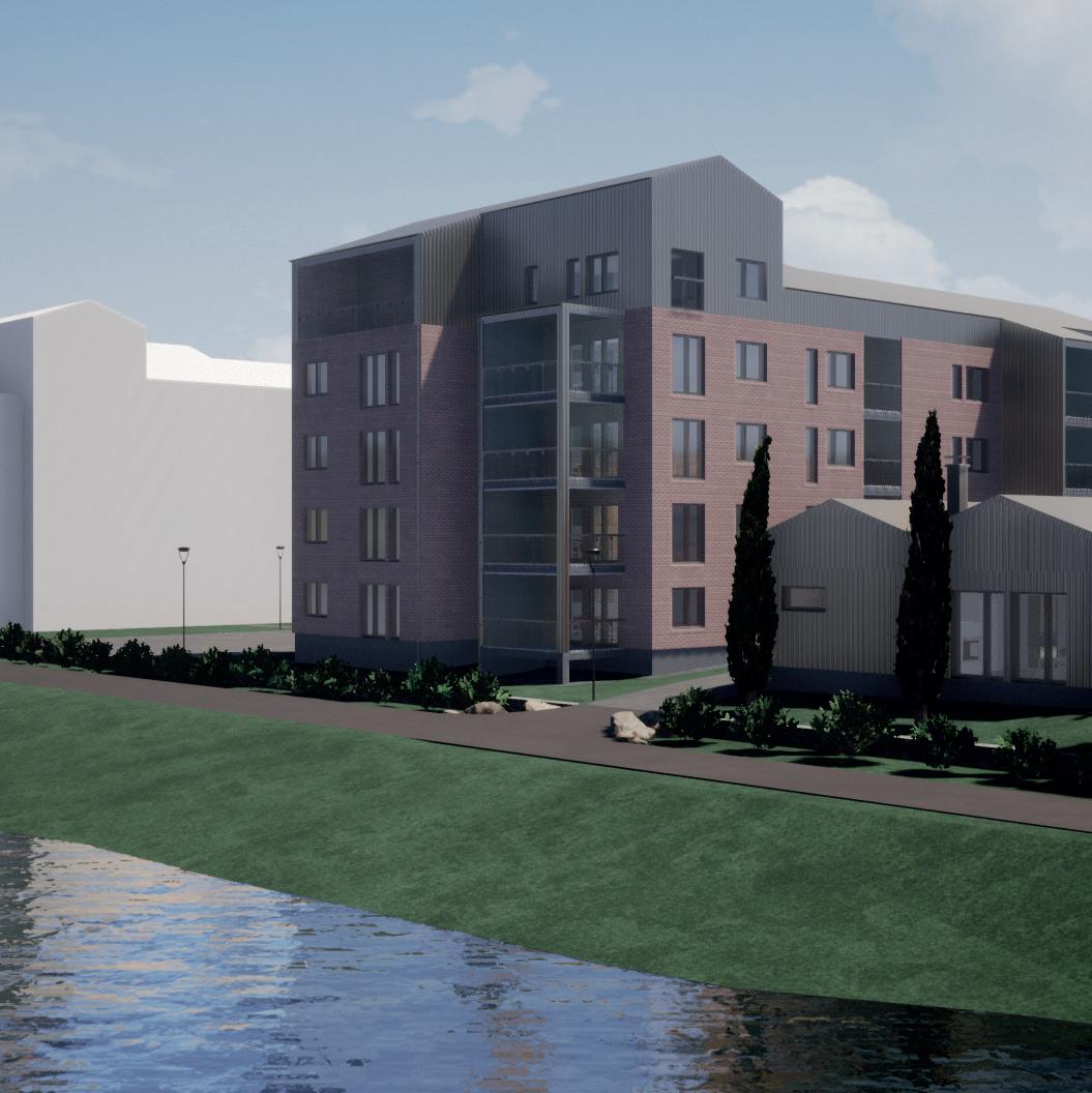 Asuinkerrostalojen rakennussuunnittelun ammattiosaamisen kurssilla tehtävänä oli suunnitella betonirunkoinen kerrostalo Oulun Toppilansaareen.