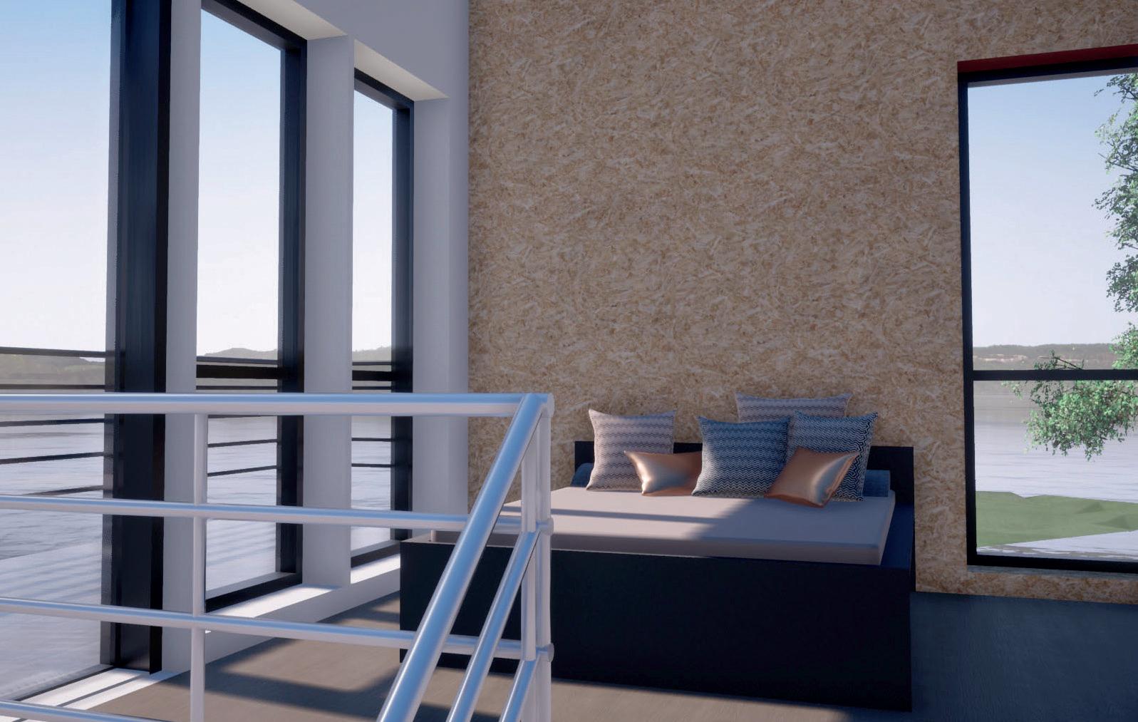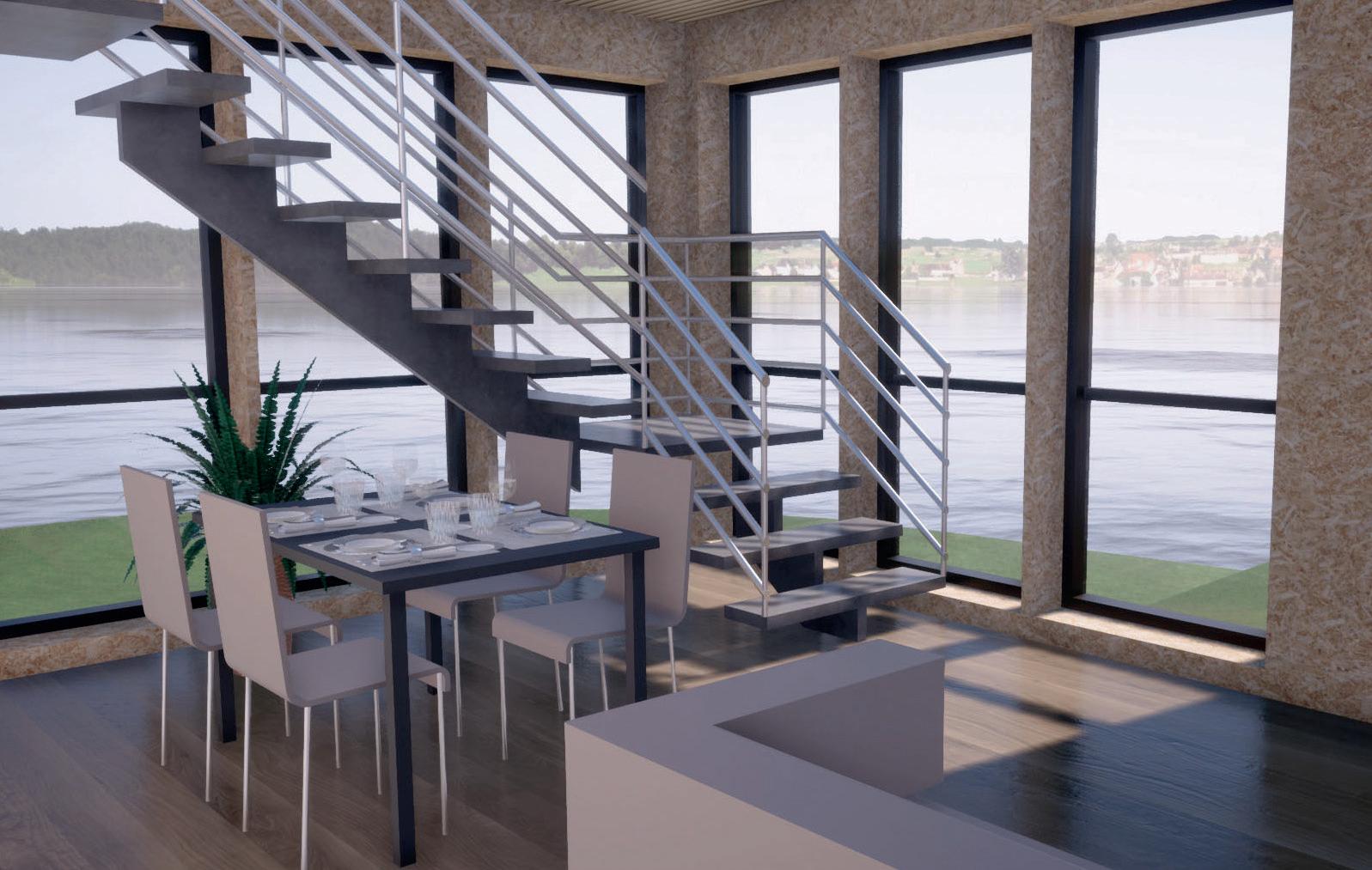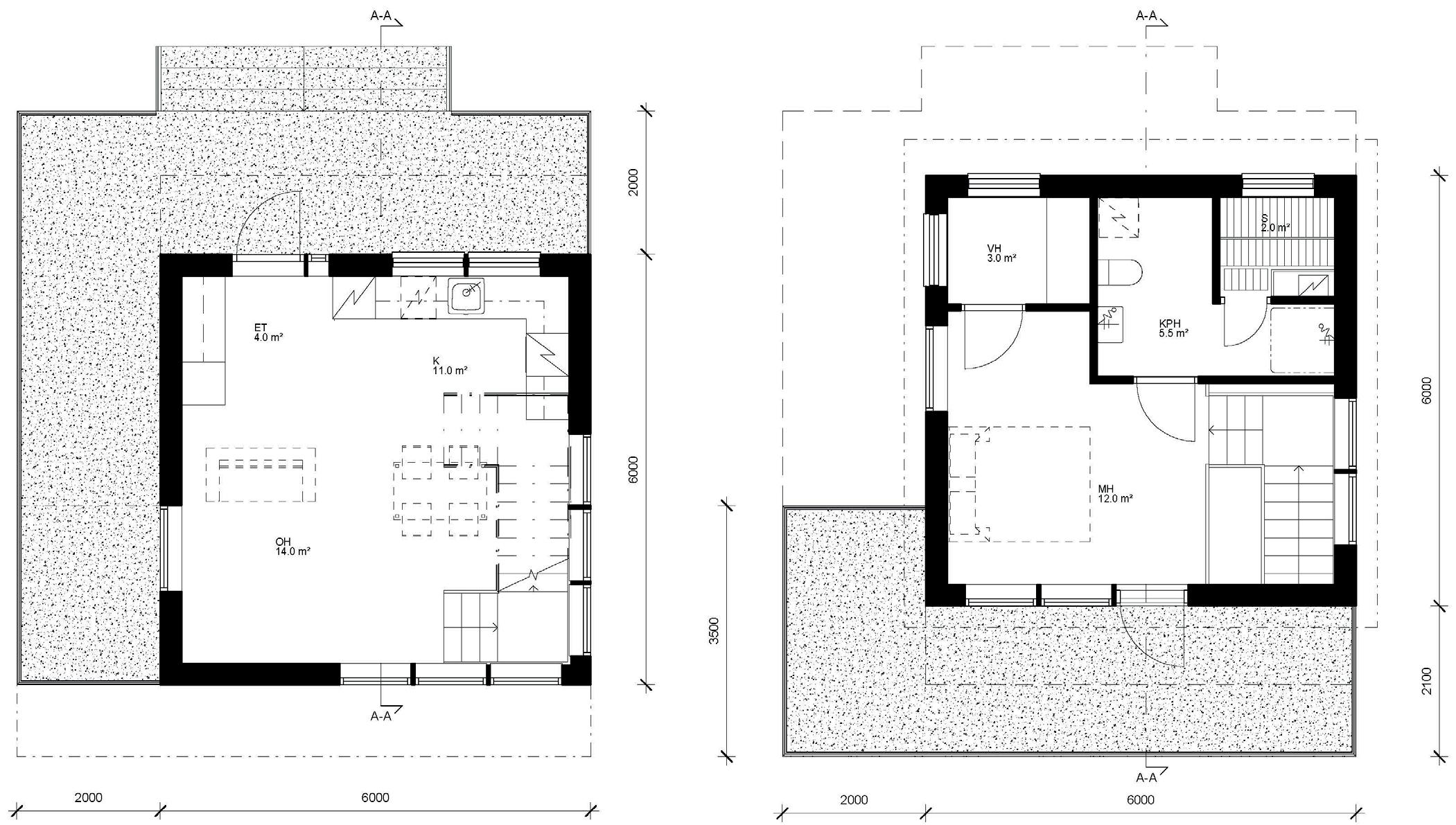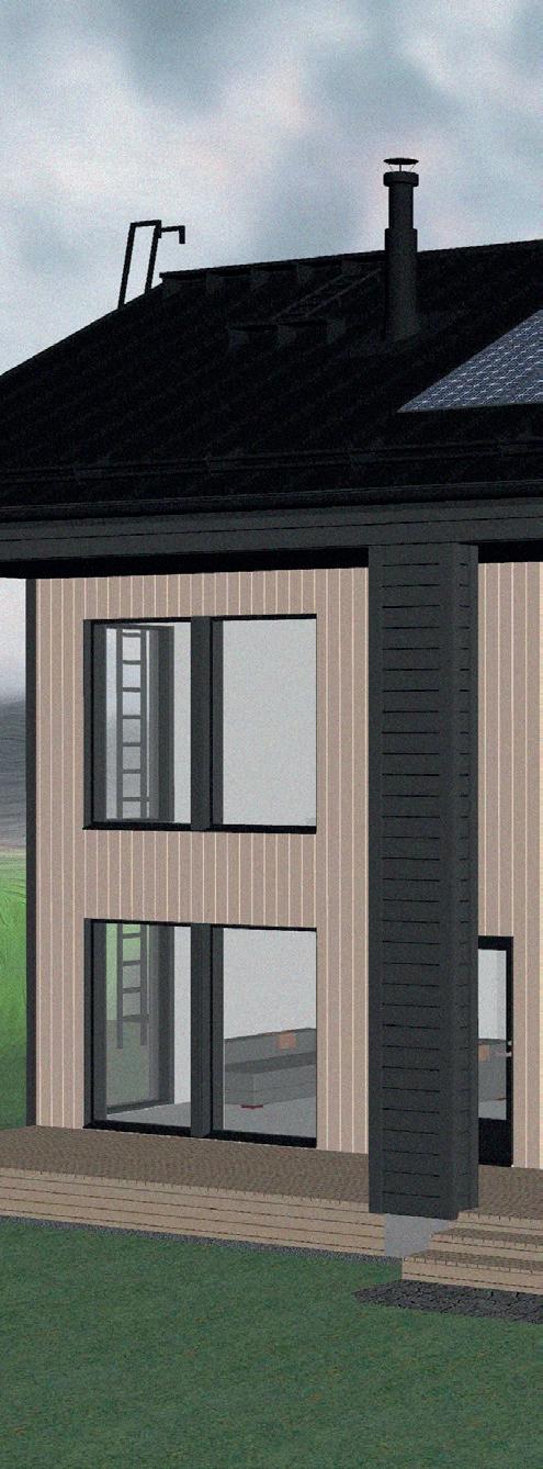 Halusin suunnitella toimivan kaksikerroksisen kodin, jossa on mahdollisuus etätyöskentelyyn kotitoimistossa. Pohja on myös muunneltavissa, jolloin yläkerran aukon kohdalle voidaan rakentaa yksi makuuhuone lisää.