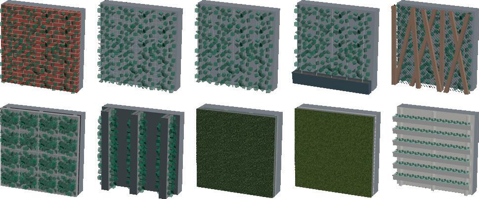 Tutkimustiedon ja teorian pohjalta päädyttiin kehittämään kymmenen eri vaihtoehtoa julkisivujen viherryttämiseksi monimuotoistamaan urbaania kaupunkiympäristöä sekä tukemaan ekosysteemin toimintaa. Vaihtoehdot toimivat suunnittelun tukena, jotta tulevaisuudessa voitaisiin toteuttaa toimivia viherseiniä ja -julkisivuja vaivattomasti.
