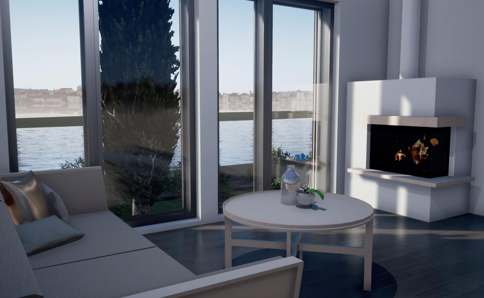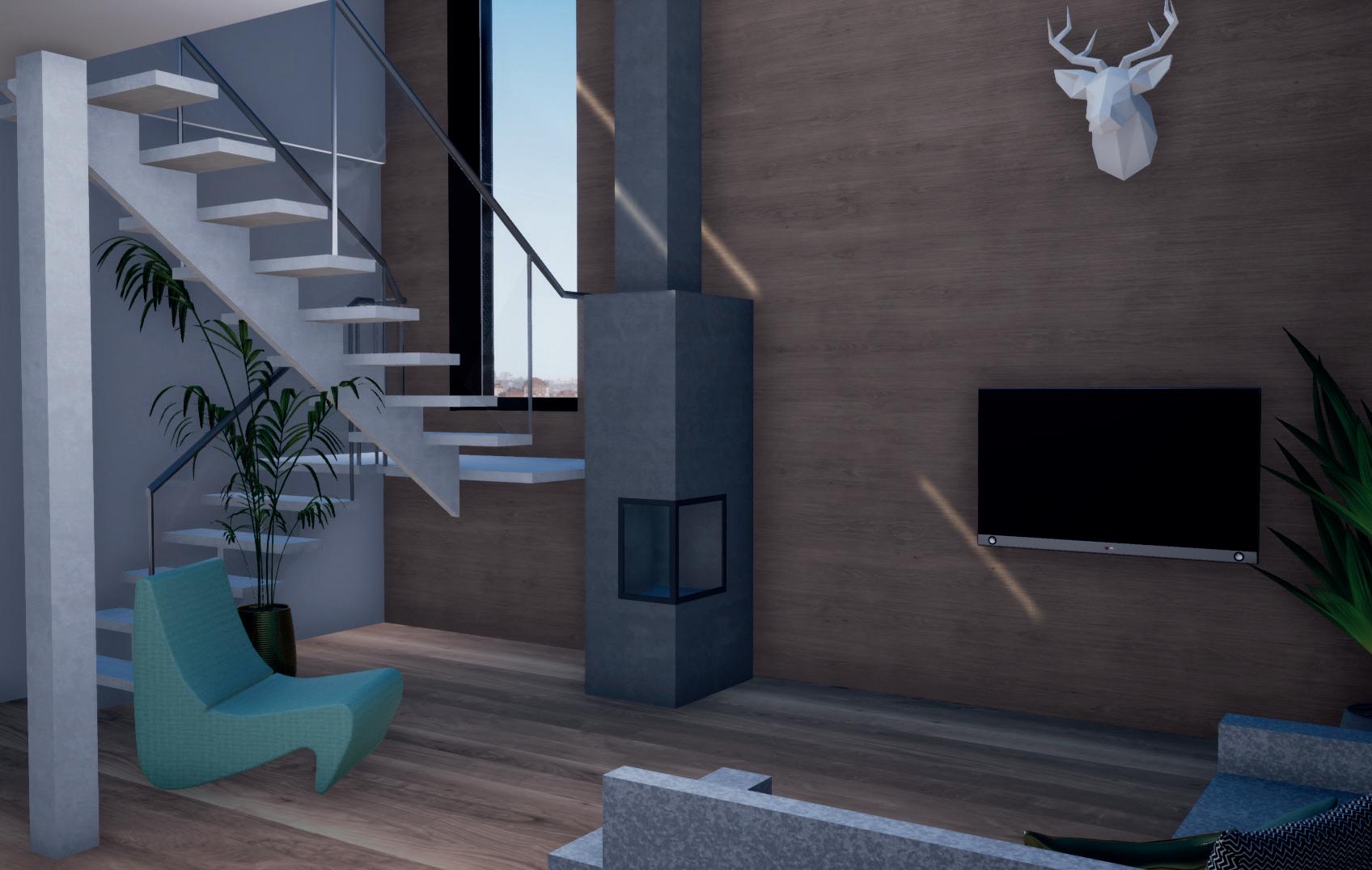 Halusin luoda jotain omalaatuista, joka näkyy massan liikuttelussa. Betoninen julkisivuverhous luo kontrastia sisätilojen puisille pinnoille, joilla halusin tuoda esiin luonnonläheisyyttä. Isot ikkunat avaavat näkymän Hartaanselälle ja saavat unohtamaan, että olet sisätiloissa.