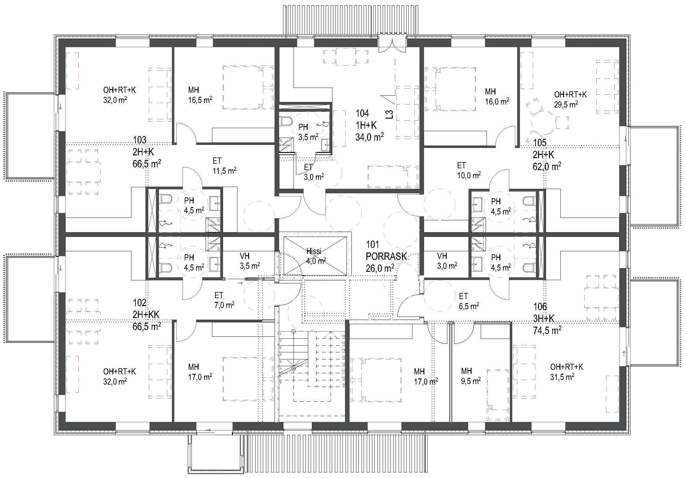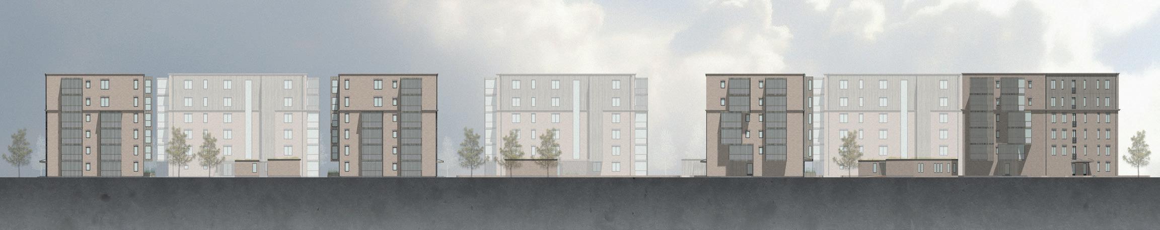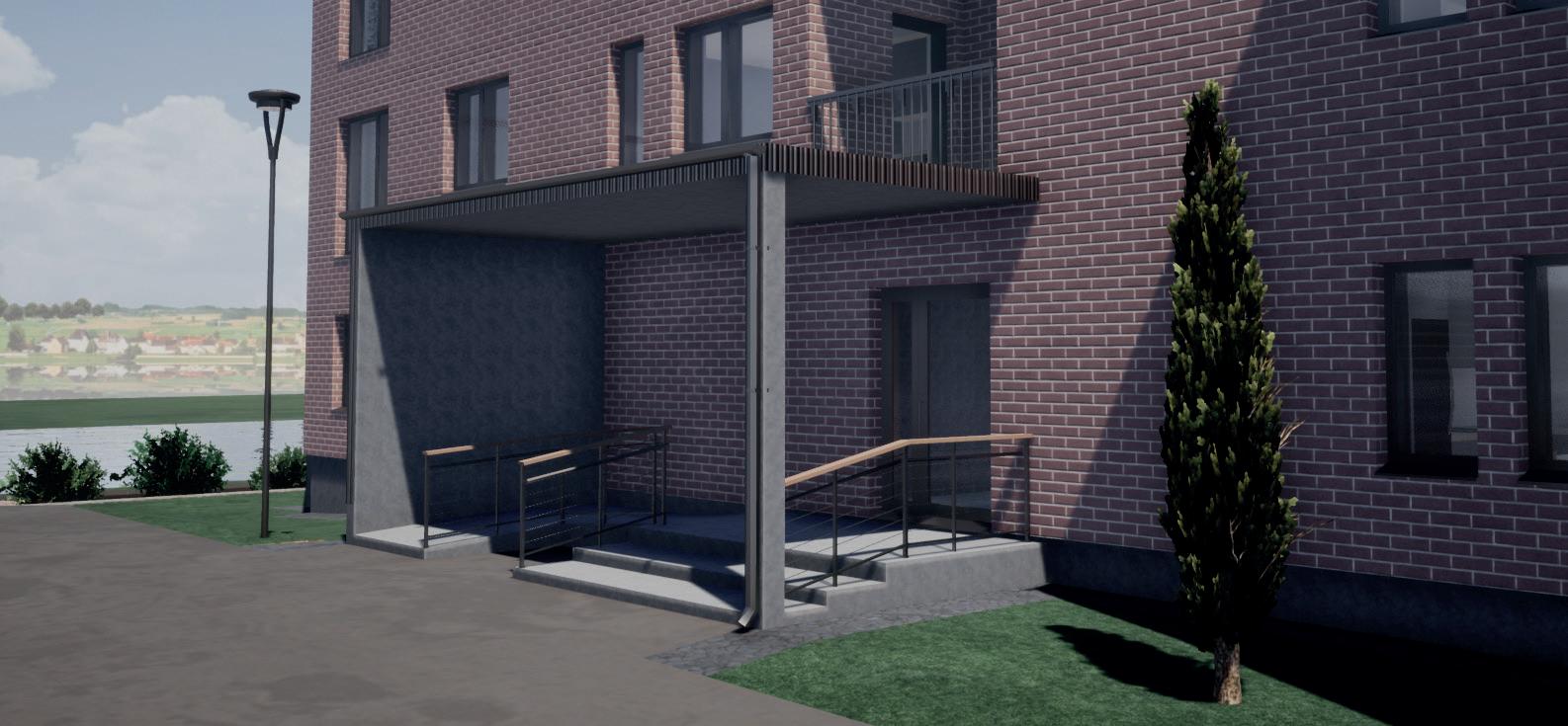 Ryhmämme halusi keskittyä mahdollisimman realistiseen ja toteutettavissa olevaan ratkaisuun, mistä johtuen pohjaratkaisut pidettiin yksinkertaisina ja monistettavina. Julkisivuissa haluttiin keskittyä harmoniseen kokonaisuuteen, jossa tiili pidettiin pääasiallisena julkisivumateriaalina yhdistettynä hienovaraisiin lehtikuusisiin yksityiskohtiin.