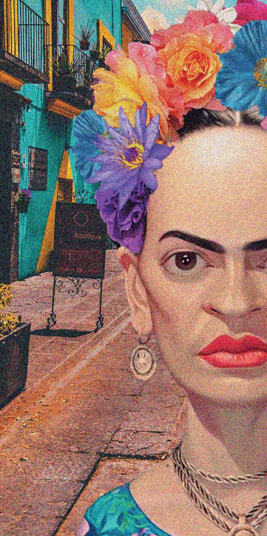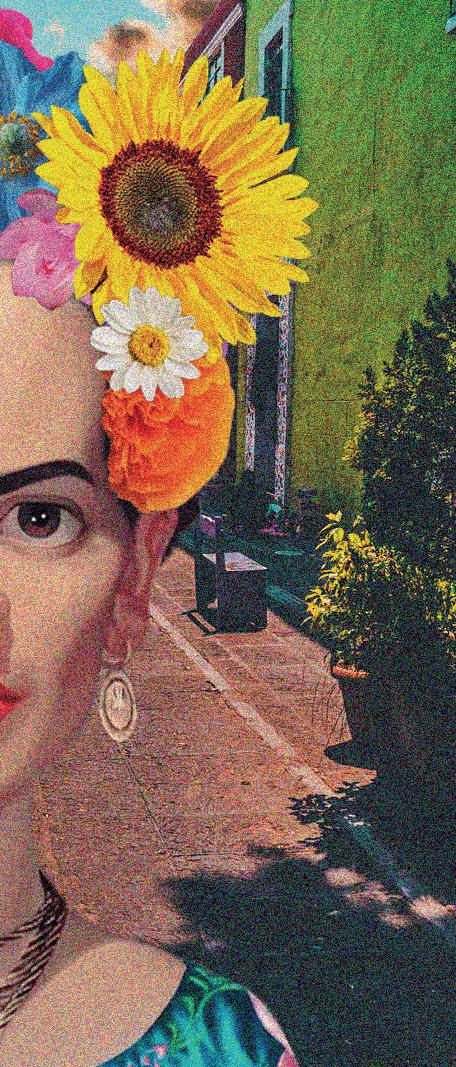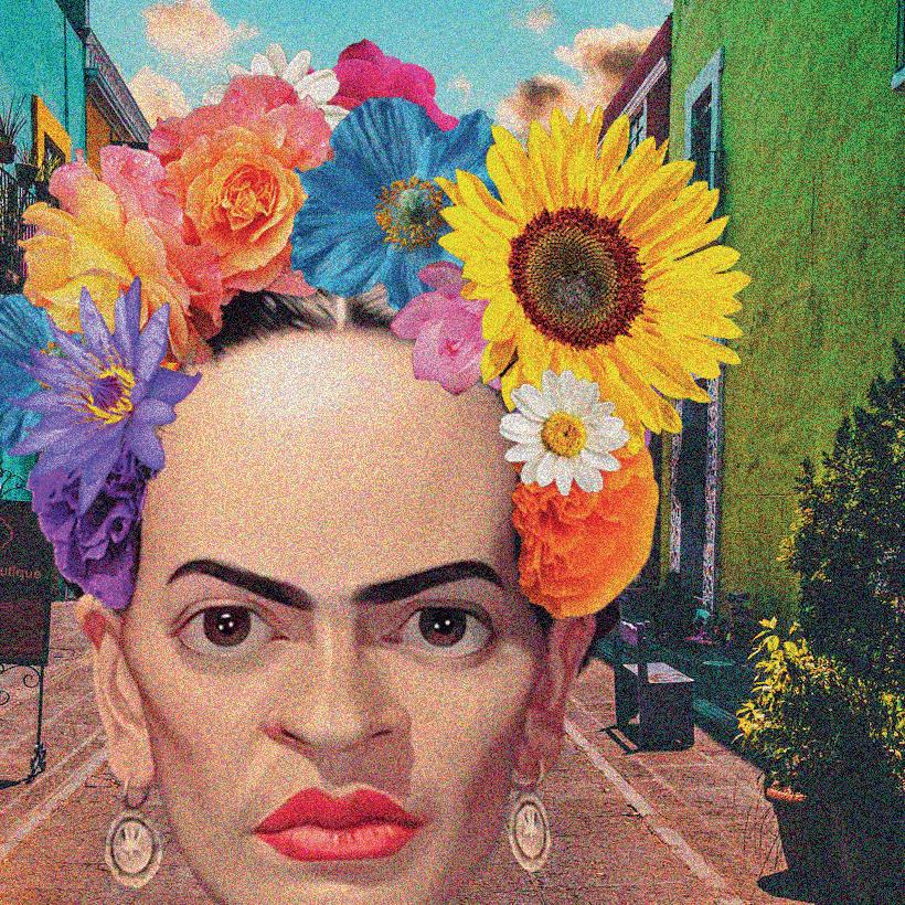 Tehtävässä annettiin käsiteltäväksi Frida Kahlon muotokuva, jota tuli muokata oman mieltymyksensä mukaan. Näin Kahlon silmissäni arvatenkin kukkaseppele päässä Meksikon kaduilla ja päätin etsiä sopivia kuvia teemaani liittyen. Kuvanmuokkauksen aloitin leikkaamalla Fridan alkuperäisestä taustastaan Select and Mask valintaa apuna käyttäen. Lisäsin uuden taustan Ctrl+V käskyllä ja säädin muotokuvan värisävyjä Camera Raw Filter suotimen avulla taustaan sopivaksi. Kukkien irrottamisessa käytin apuna Object Selection työkalua, jolla voi älykkäästi valita objektin kuvasta. Hienosäädin valintaa Magic Wand ja Lasso työkalujen avulla ja leikkasin kukan taustastaan sekä liitin Frida kuvaan Ctrl+C ja Ctrl+V käskyillä. Tein jokaiselle haluamalleni kukalle saman ja skaalasin niiden kokoa sekä asentoa seppeleeseen sopivaksi Rotate ja Scale toiminnoilla. Kun päähine alkoi muodostua, päätin vielä muuttaa Fridan korvakoruja, sillä alkuperäiset eivät olleet mieleeni. Leikkasin ja kopioin kaulakorusta pyöreän riipuksen korvakorujen paikalle. Säädin uusien korvakorujen asentoa luonnollisemmaksi Scale ja Perspective säätöjen avulla. Yhdistetyn kuvan viimeistelin vielä Camera Raw Filter suotimen avulla sekä lisäämällä Filter Gallery valikoimasta rakeisuutta Film Grain suotimella.