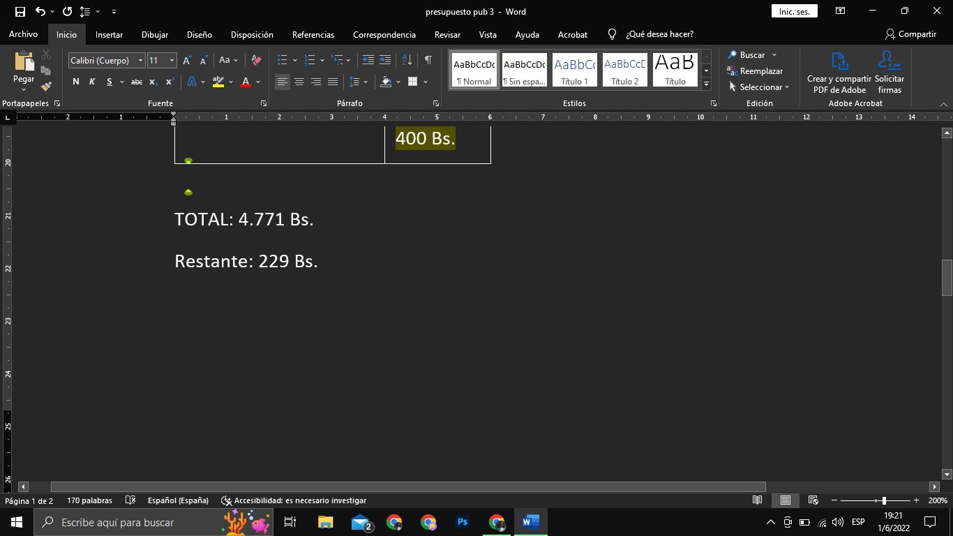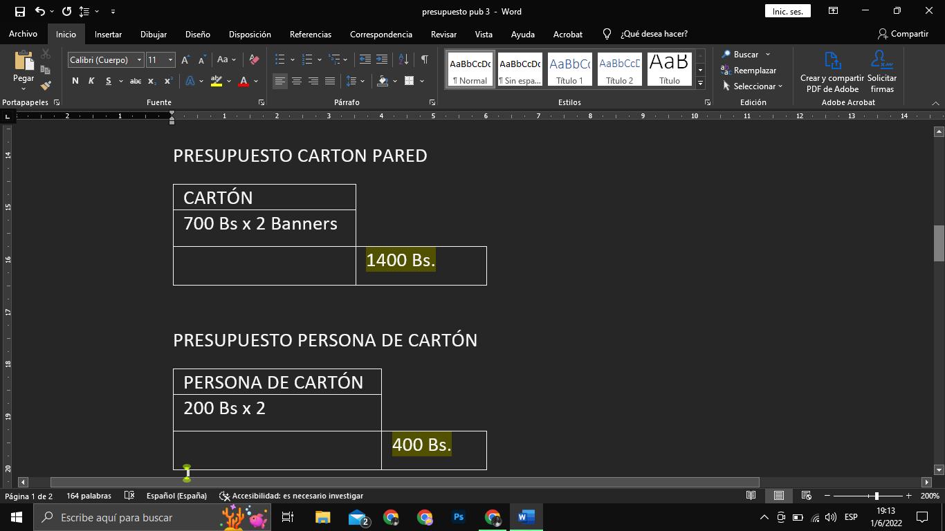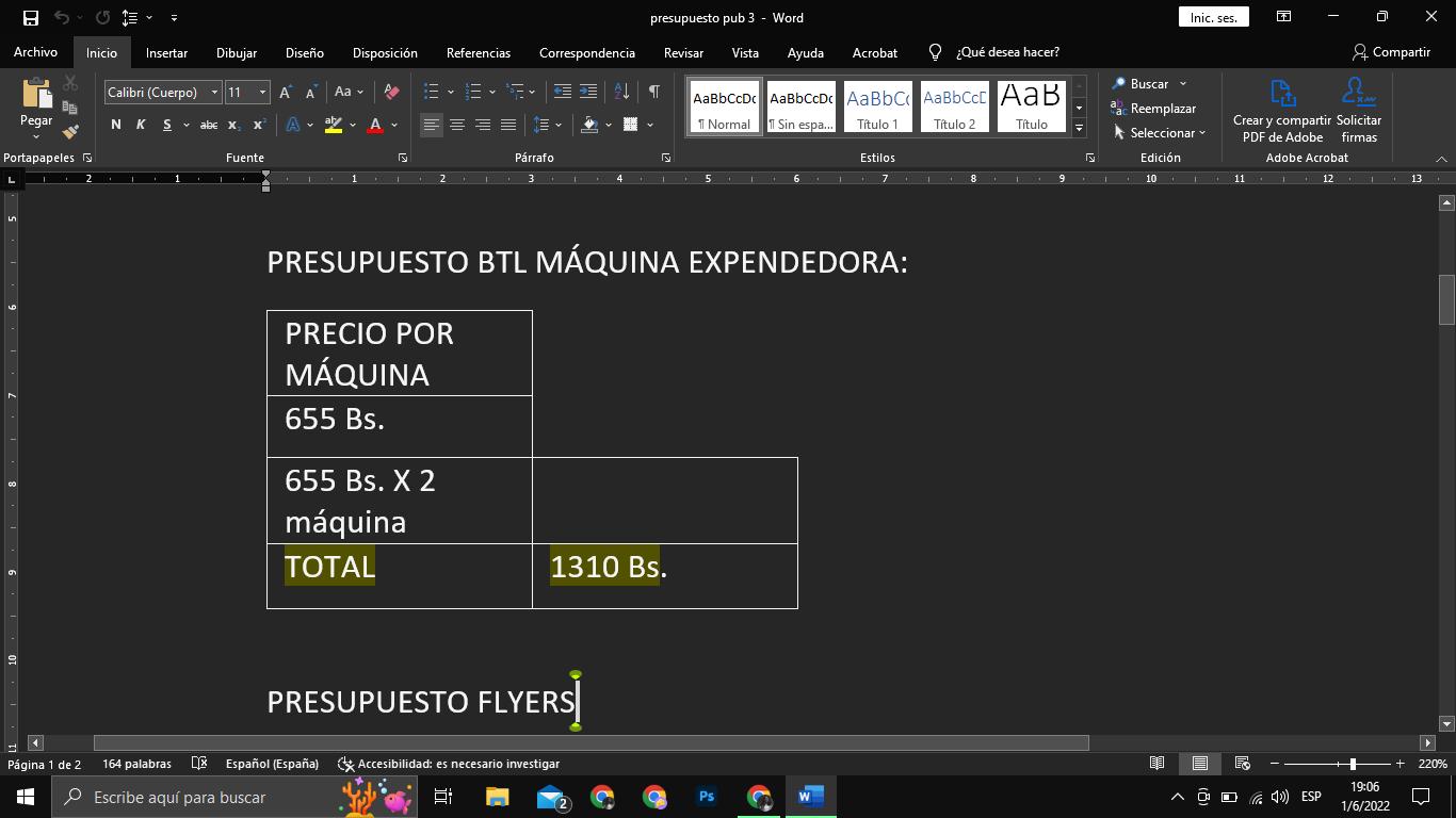 Redes sociales: Bs 3600 Influencers: Bs 4000 Pagina Web. Bs 2500 Stand: Bs 4930 Publicidad exterior: Bs 7400 Souvenirs: Bs 2500 GASTO TOTAL: Total: Bs 24.930