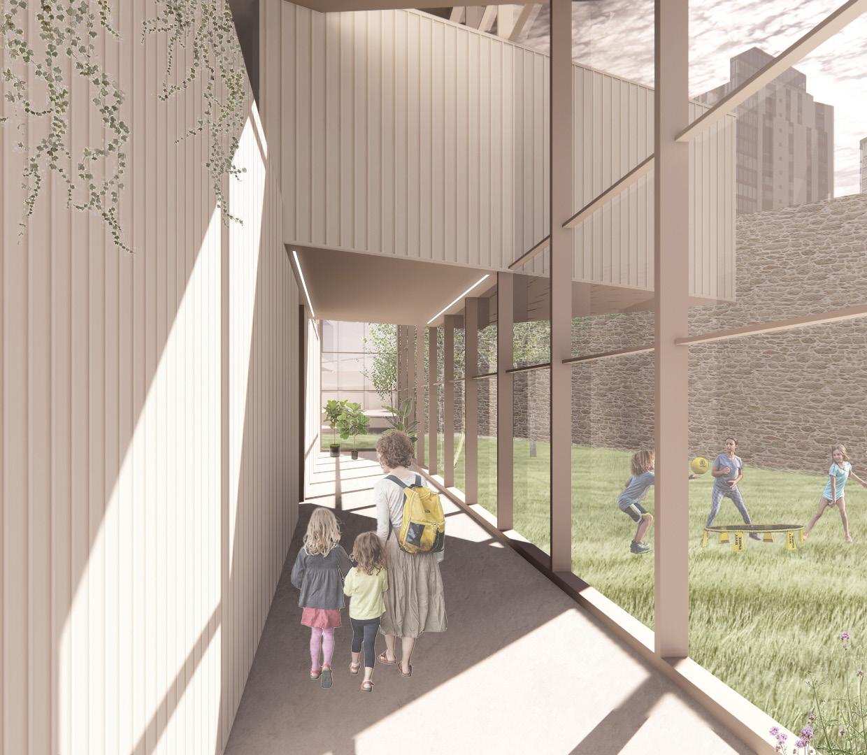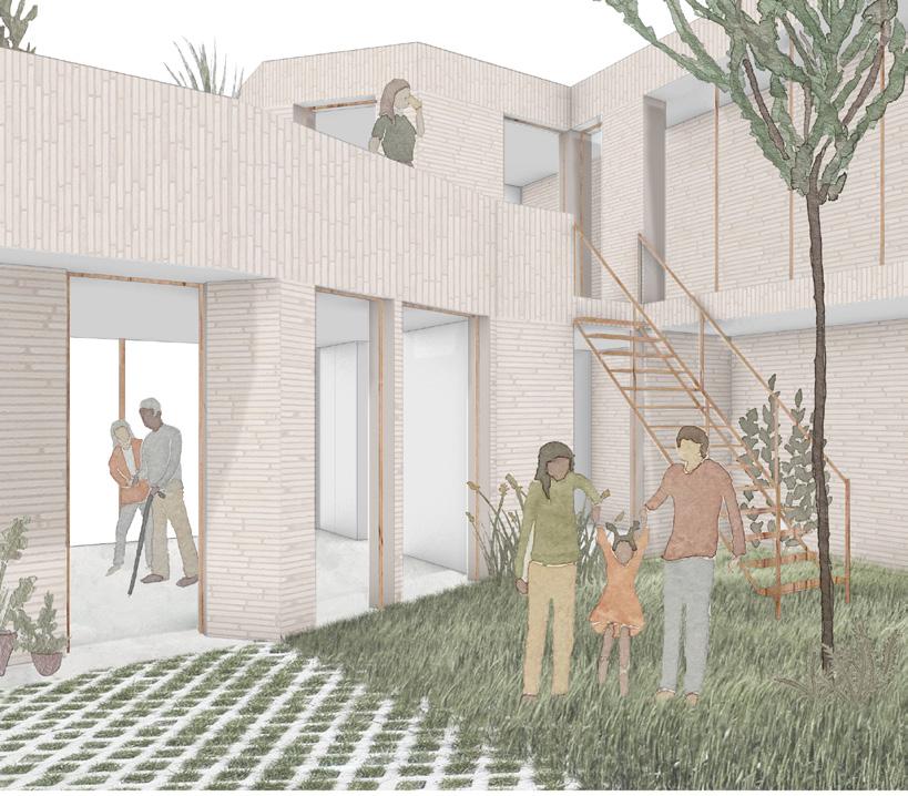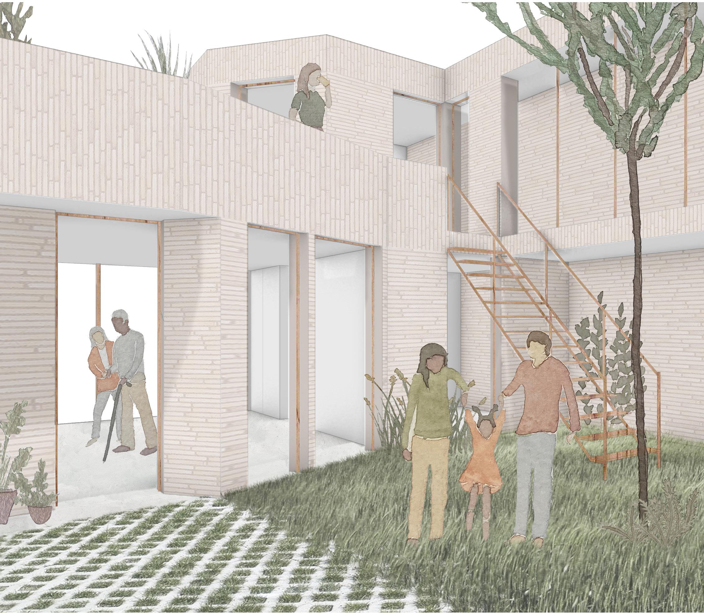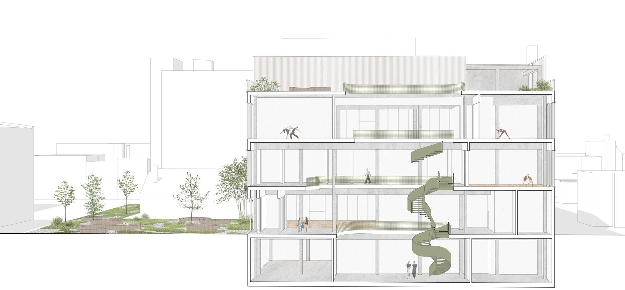 Pour poursuivre la mission des sœurs qui habitaient le couvent, l’ensemble sera consacré à la communauté ainsi qu’à des populations plus vulnérables. De plus, la disposition de l’extension se fait en continuité avec les différentes phases de construction du couvent. Enfin, la nouvelle branche permet l’ajout progressif de maison alternative. Ces dernières sont situées à l’endroit le plus calme du site, délicatement déposées à travers la riche végétation.