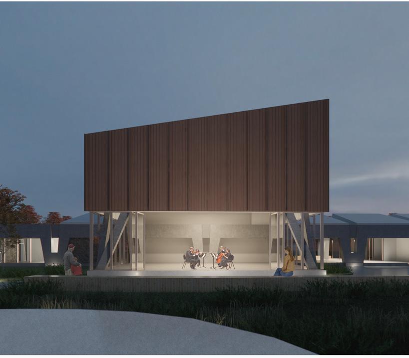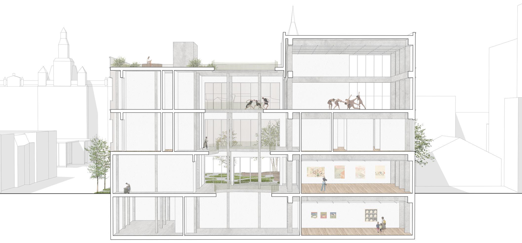 La chapelle existante est transformée en salle de concert. L’intégration de la maison de la culture au reste du programme est une façon d’apporter la culture directement aux ainés et aux personnes autistes, deux groupes pour qui il peut être plus complexe d’accéder à des bibliothèques, des galeries d’art ou des salles de spectacle. Ainsi, les concerts de guitare sont aussi accessibles que la cuisine commune ou le jardin.