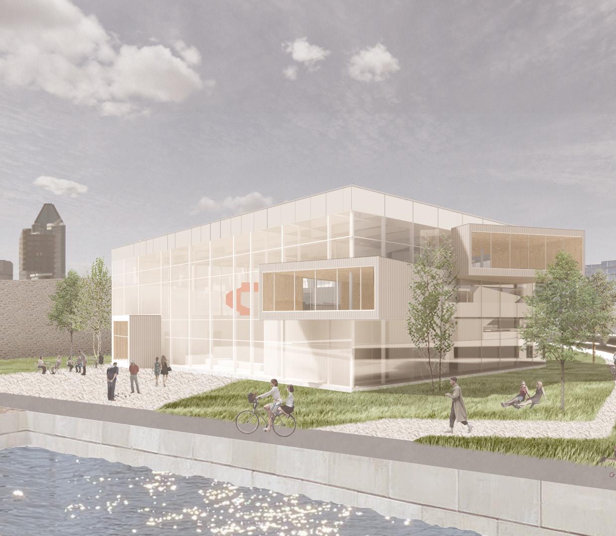 Inspiré d’une émission jeunesse québécoise, Bloc-à-Bloc est une médiathèque qui stimule l’imaginaire et rappelle les jeux de construction ludiques des enfants. Le cœur du projet est composé d’une empilade de blocs, tous orientés en fonction des vues uniques que le site du Bassin Peel peut offrir. L’empilade est ensuite recouverte d’une grande structure semi-transparente qui crée une large zone tampon à l’extérieur des blocs. Les nombreuses terrasses créées par l’empilade peuvent donc être utilisées tout au long de l’année, peu importe la température.