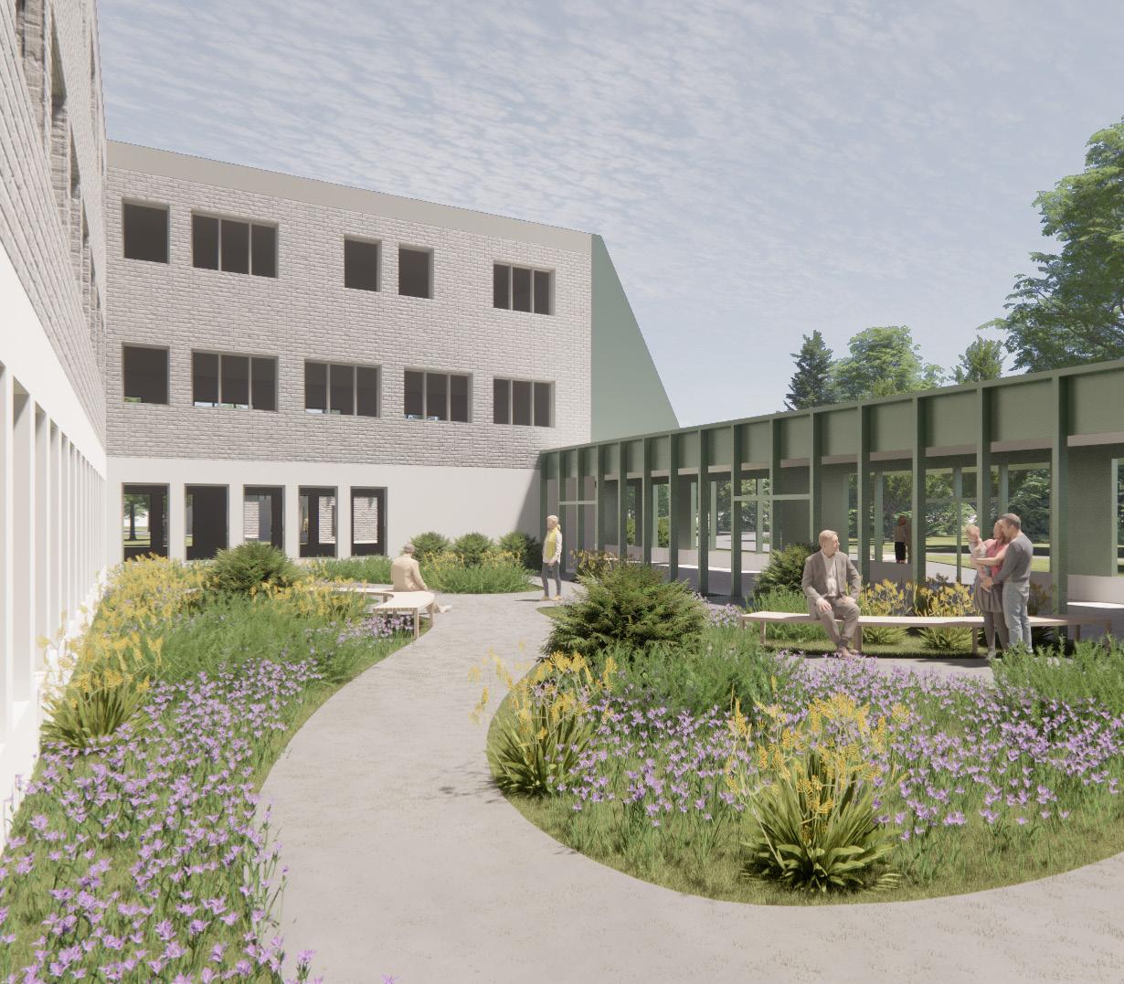 Le programme se décline en trois phases. Dans un premier temps, une résidence pour personnes âgées est aménagée à même l’ancien couvent. Ce choix permet un réemploi du bâtiment sans modifications majeures. Puis, dans un second temps, une branche est ajoutée à l’arrière du bâtiment. Cette dernière est composée de trois maisons adaptées pouvant chacune accueillir 4 personnes autistes. Enfin, la chapelle du couvent ainsi que l’ancienne maison qui le compose seront transformées en maison de la culture, lieu de rencontre entre les deux groupes et le reste de la communauté.