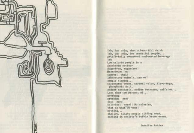 Two pieces of MA student art from across the decades. The piece on the left was found in one of our earliest literary magazines from the 1977 1978 school year attributed to E.M. The piece on the right was created in 2022 on Scratchboard by Devika M. '23.