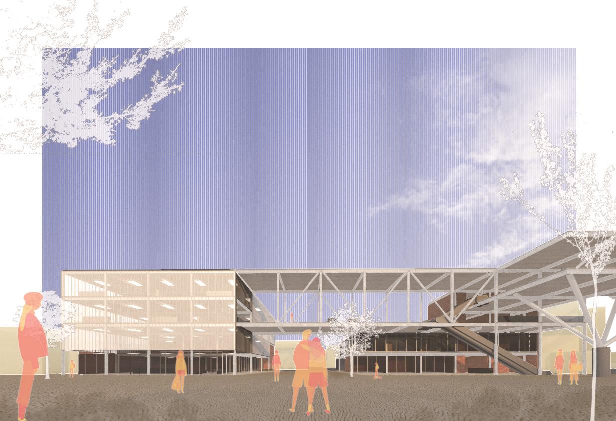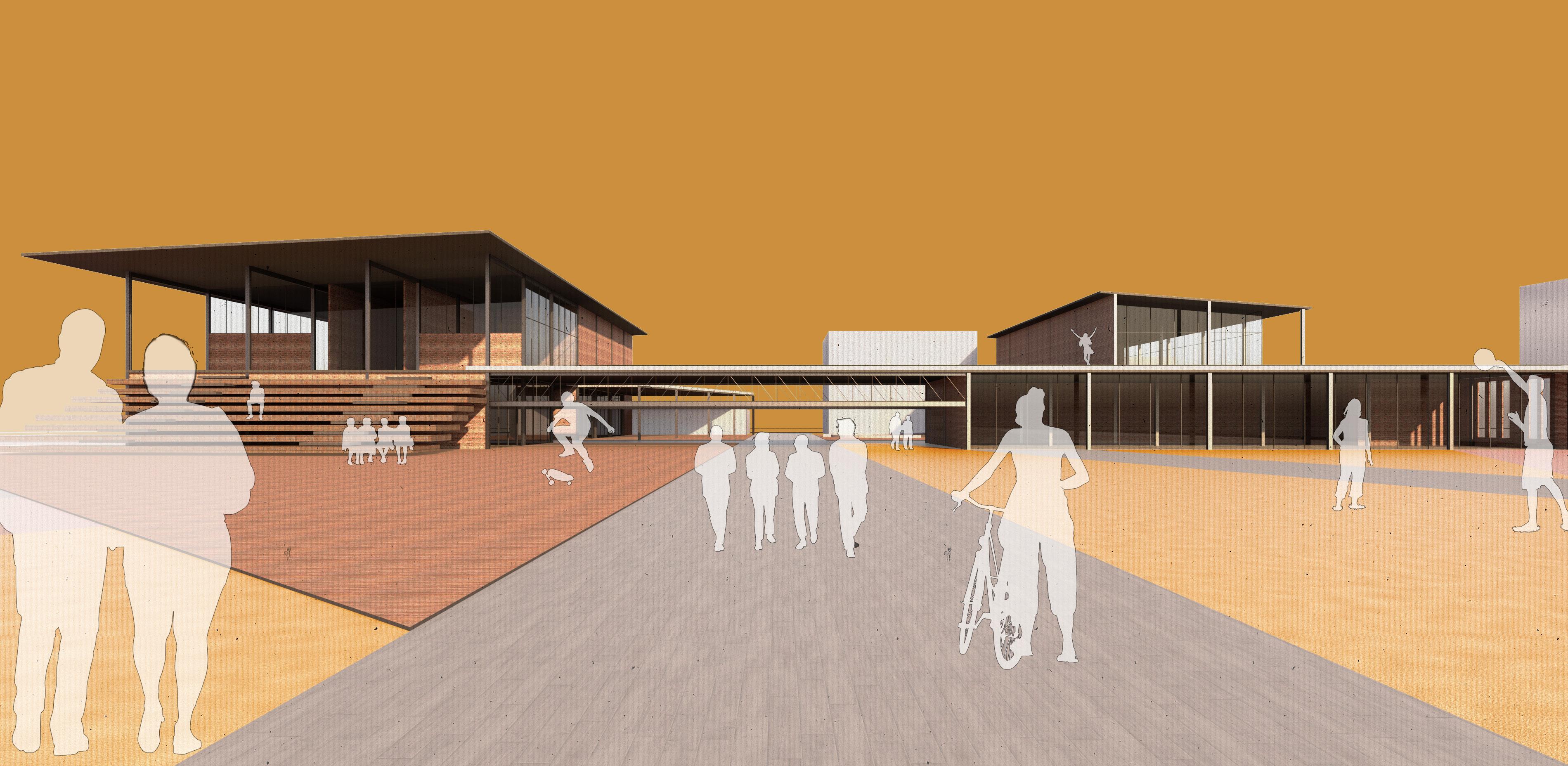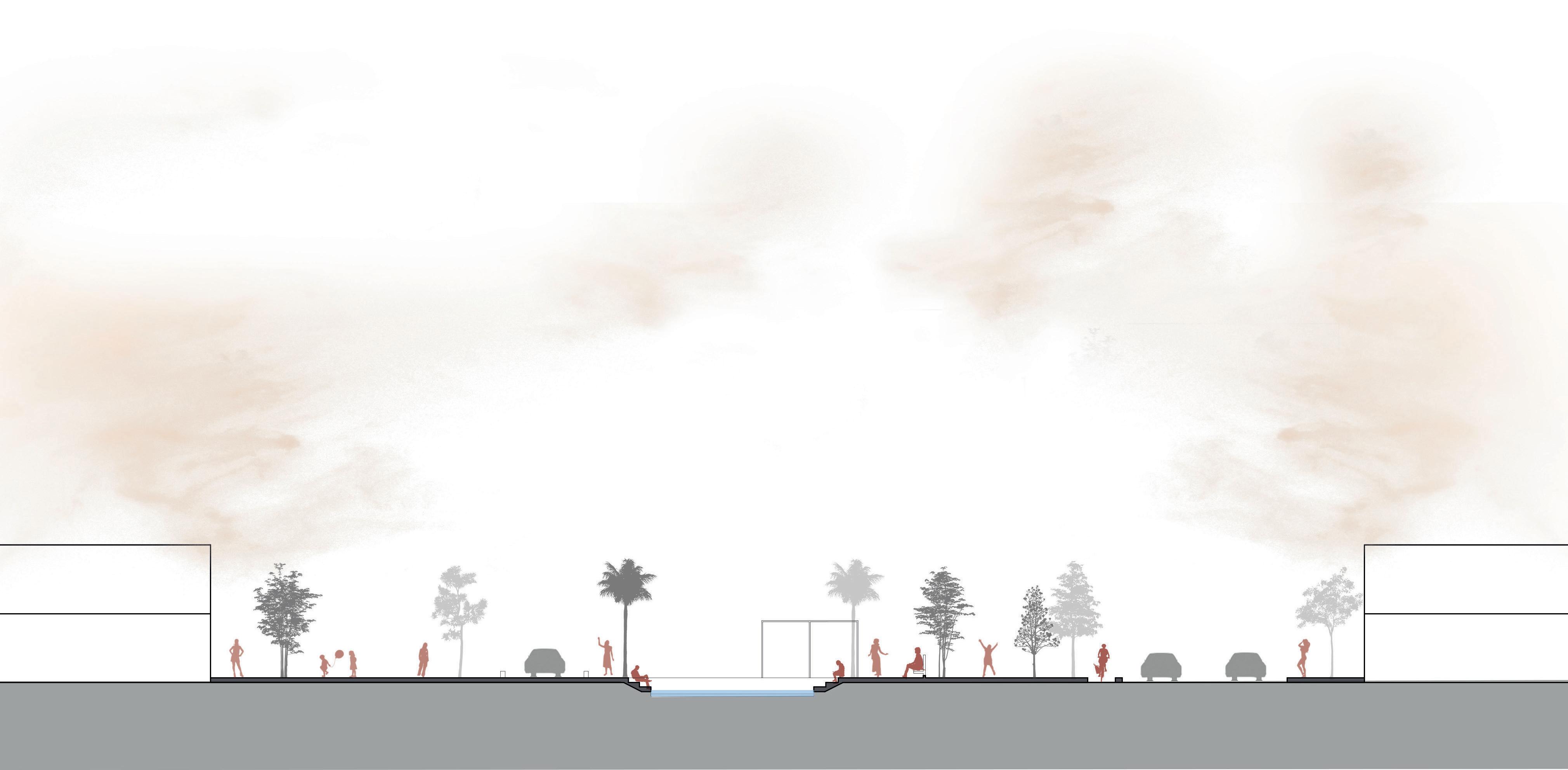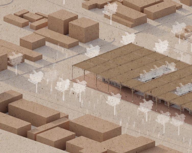 a partir de pequenas escadarias. Pequenas unidades modulares de diferentes usos complementam a paisagem com o intuito de trazer maior vitalidade e movimento para a área.