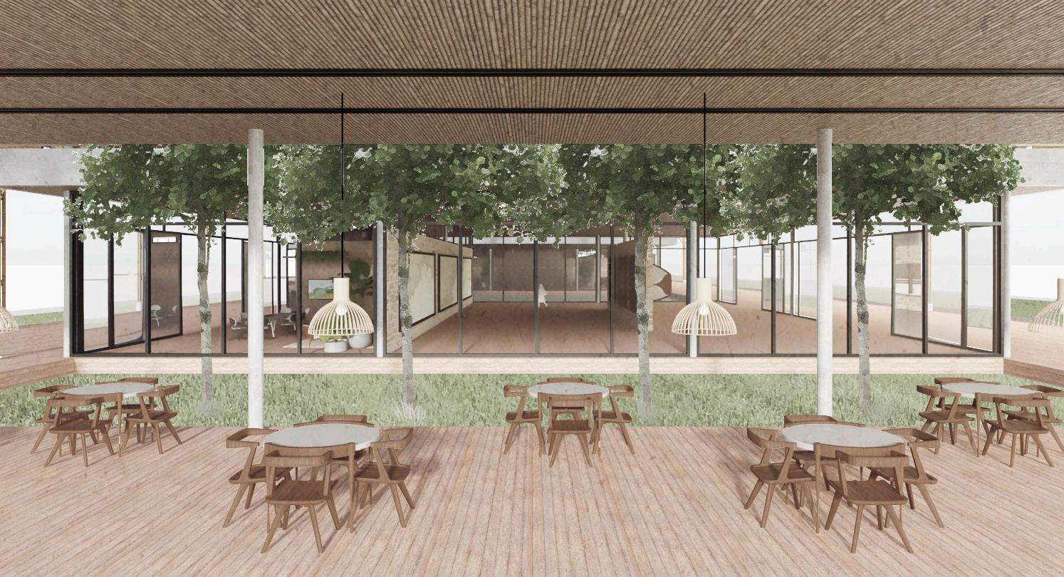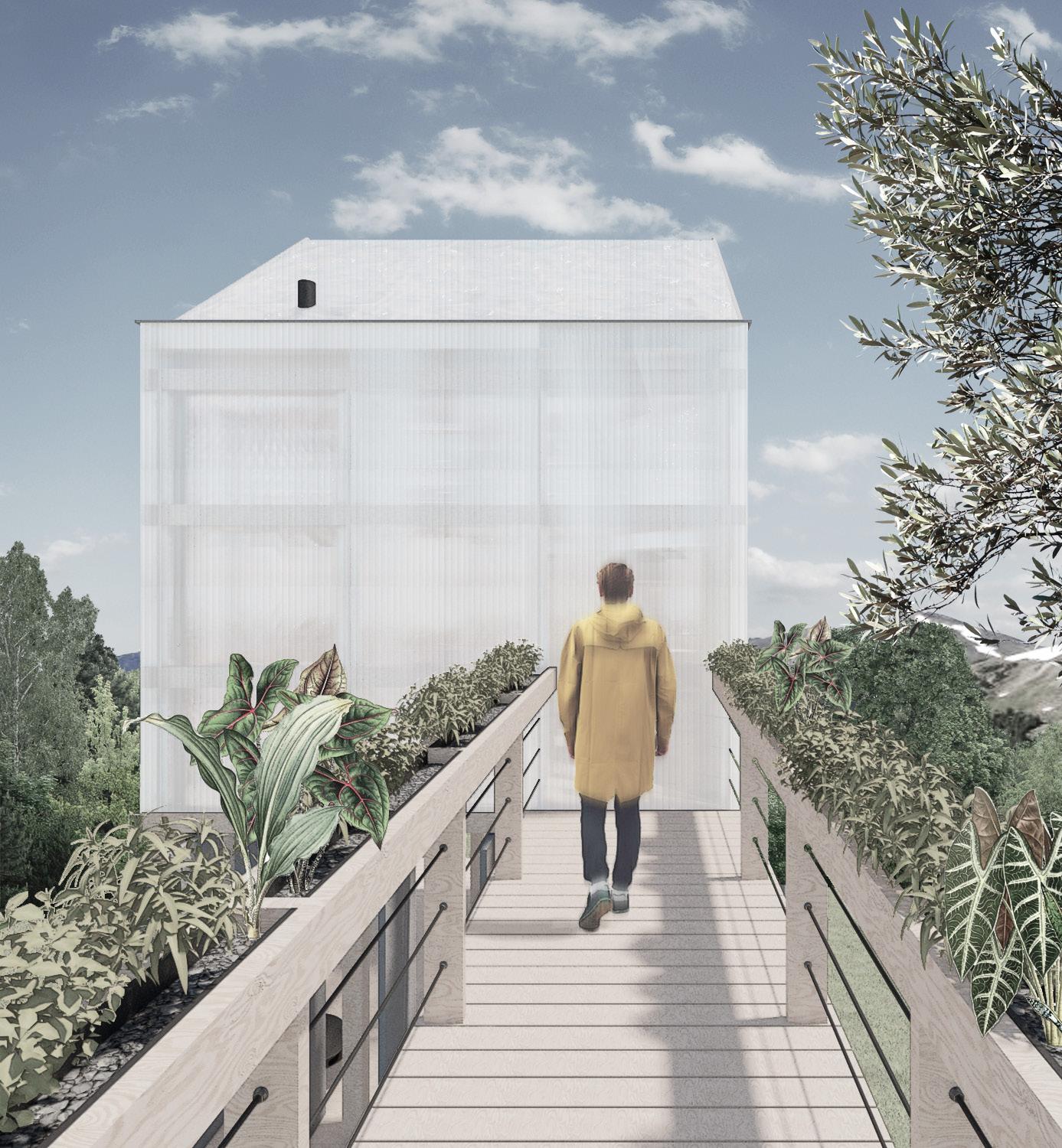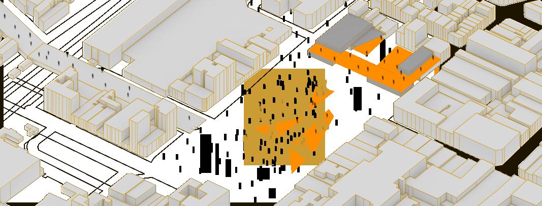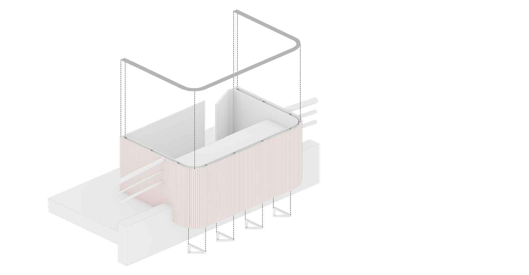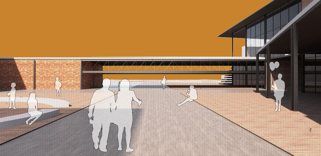 a partir de pequenas escadarias. Pequenas unidades modulares de diferentes usos complementam a paisagem com o intuito de trazer maior vitalidade e movimento para a área.