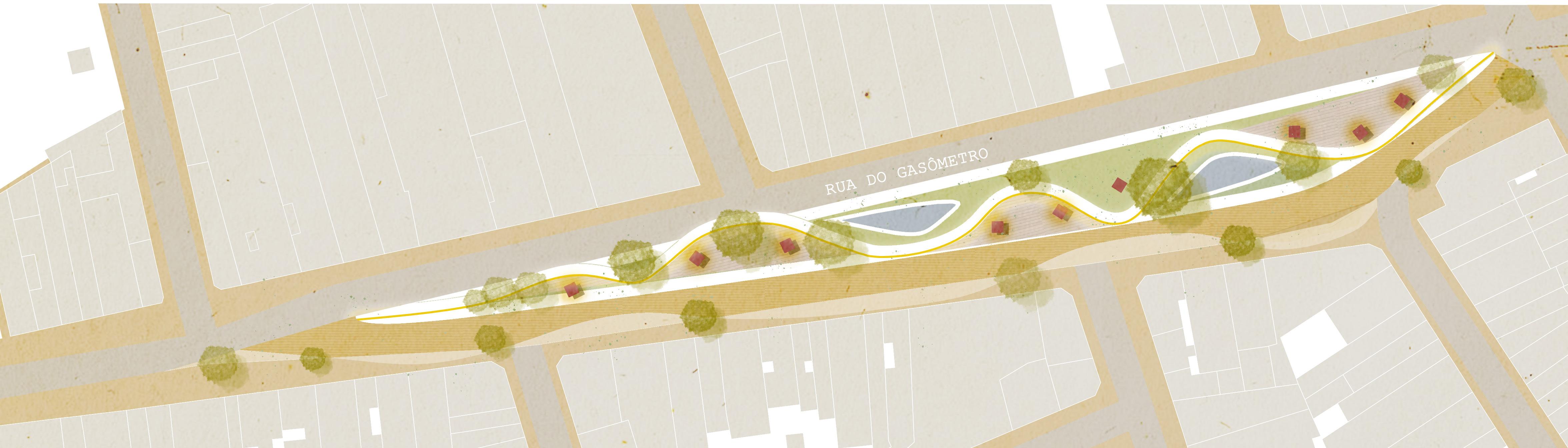 Localizado na rua do gasômetro, rua esta que teve sua origem ligada à antiga empresa responsável pela iluminação à gás de São Paulo, o projeto tomou como principal partido o aspecto histórico ligado à luz. Em decorrência, foi criada uma linha iluminada em LED que segue o desenho do percurso principal. Adicionalmente, foram criadas áreas de permanência visíveis a partir dos fluxos das calçadas e espelhos d´água rebaixados acessíveis
