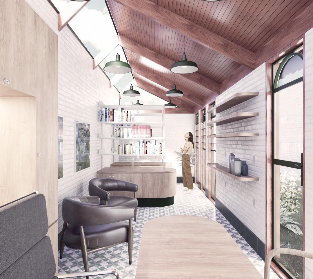 Biblioteca Área de leitura/ Permanência Pequeno comércio