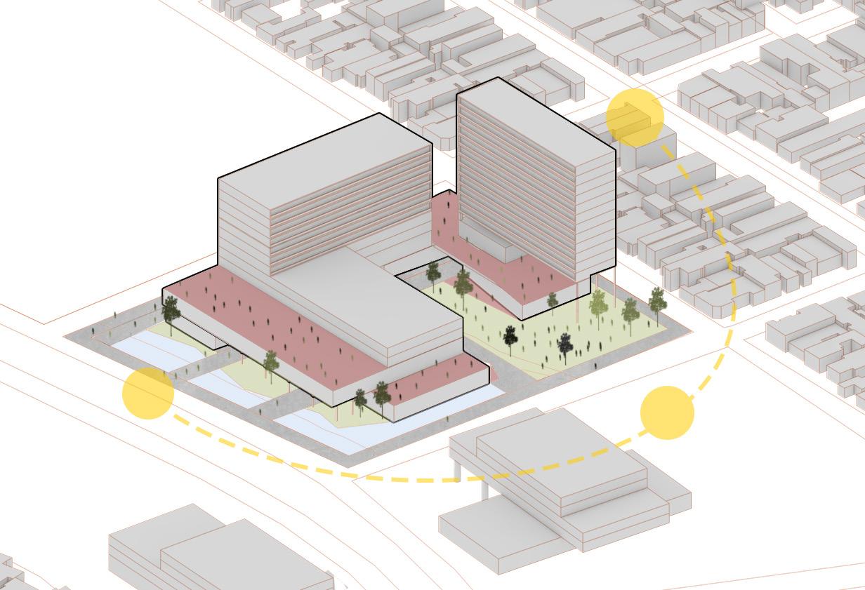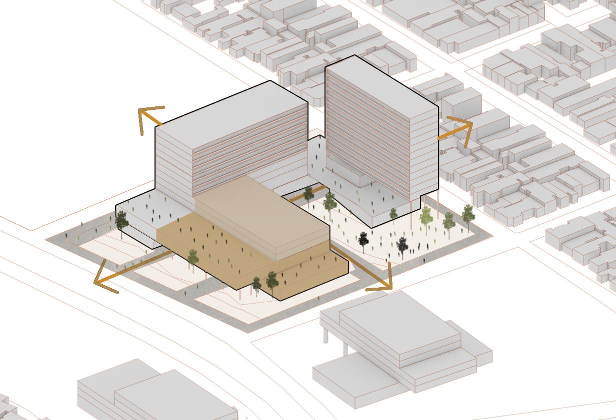 Também foram proposto edifícios residenciais e escritoriais, trazendo maior movimento ao complexo por sua diversidade de usos.