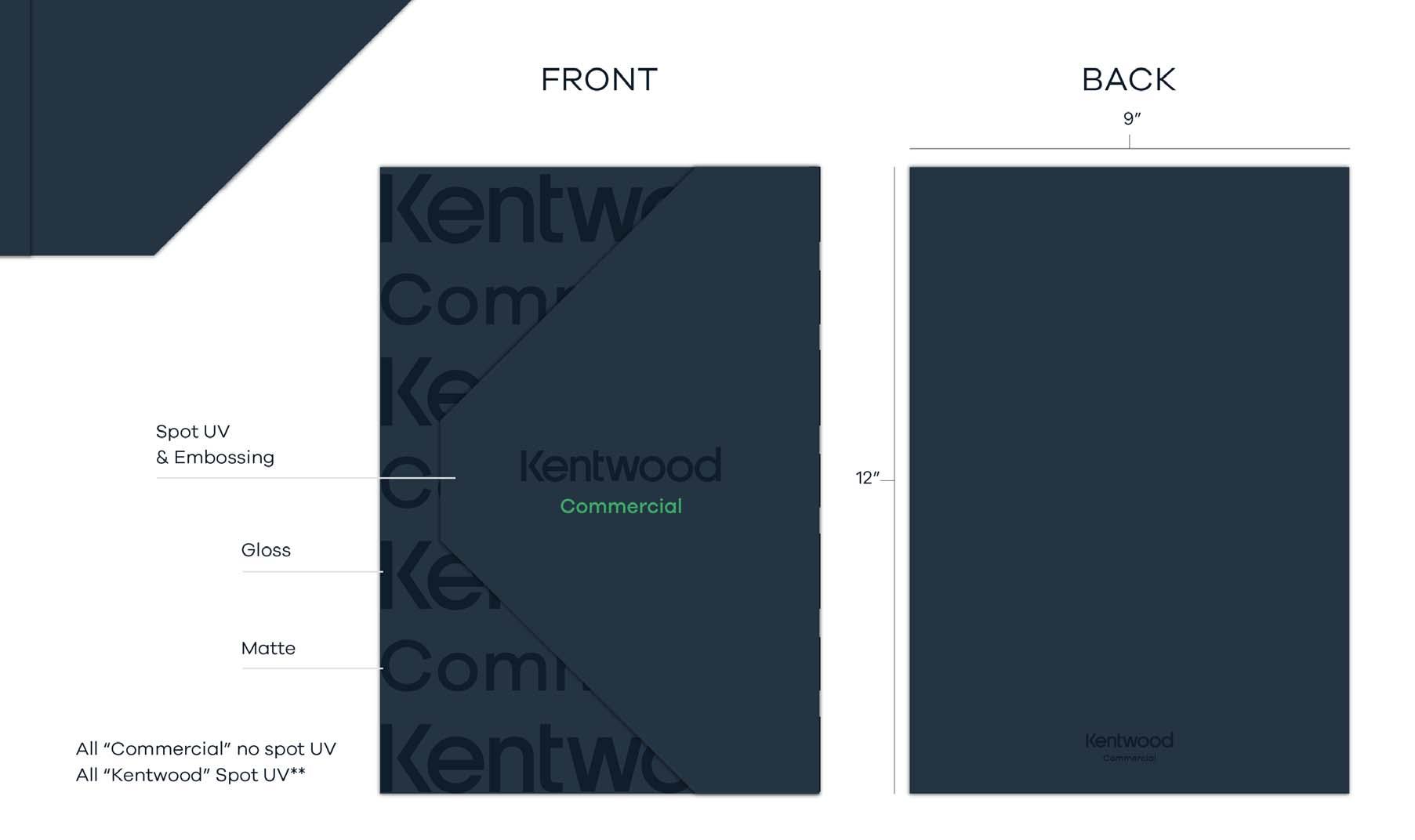 This folder was designed for the Kentwood Commcerial branch of Kentwood Real Estate. The folder will be used as a presentation folder for client meetings