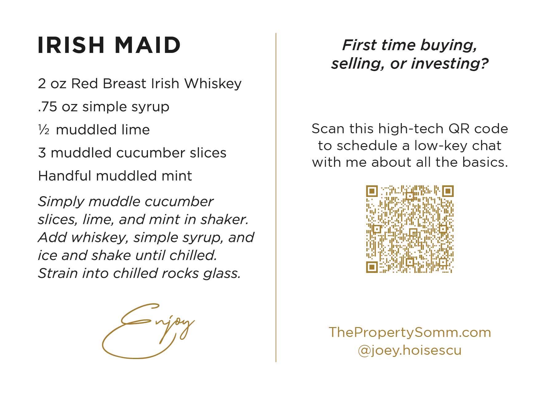 After completing the brand design for “The Property Somm.”, Joey hired me to create a mailer postcard designed to generate leads for his business. The celebratory postcard show left contains a QR that when scanned pulls up an automated SMS message to Joey. This prewritten message asks to schedule a chat about Denver real estate with Joey.