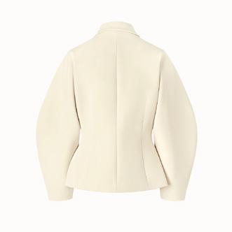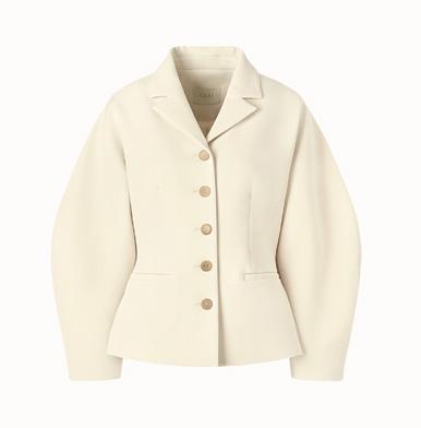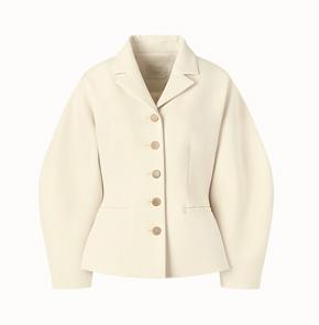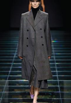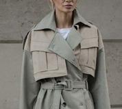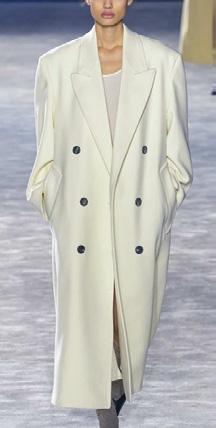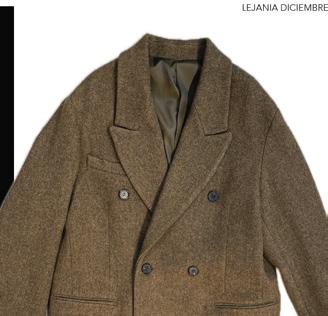 double breasted 40L buttons (6 units at the front) similar to the ones at the picture) slightly dropped shoulder one big flap pocket at the side that overlaps.