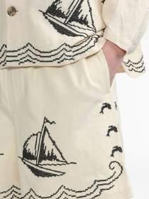 >Drawstring shorts: oversize t, cotton linen rustic feel fabric. Contrast waistband and drawstring.