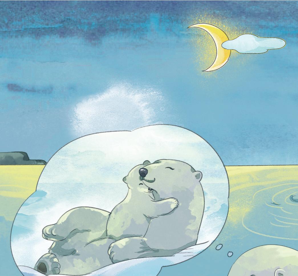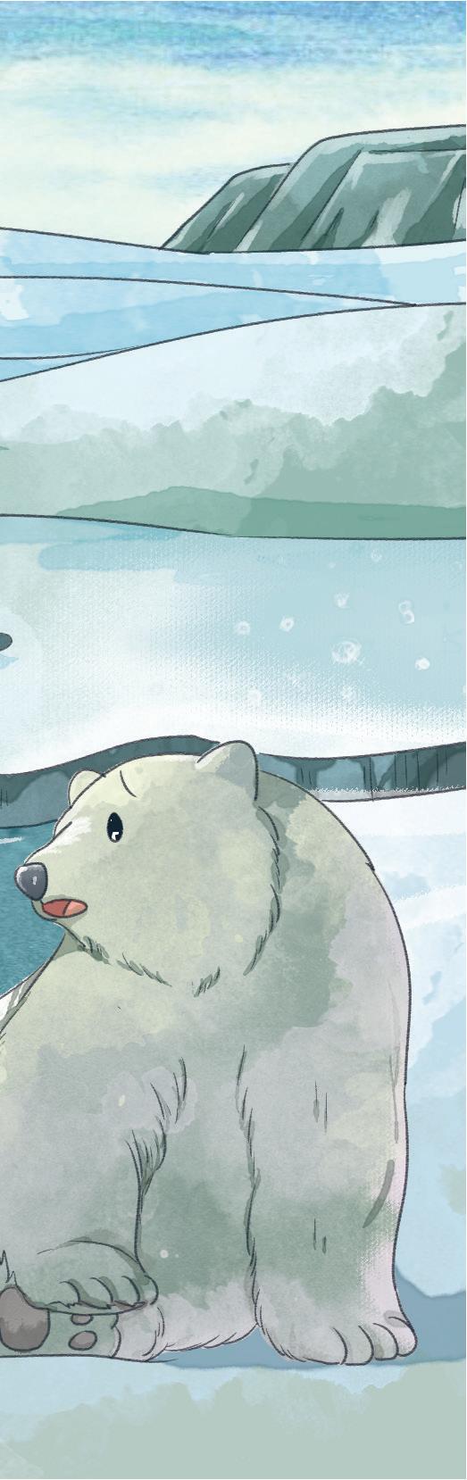 北极熊小白和妈妈住在北极。妈妈早上出 去,晚上回家。