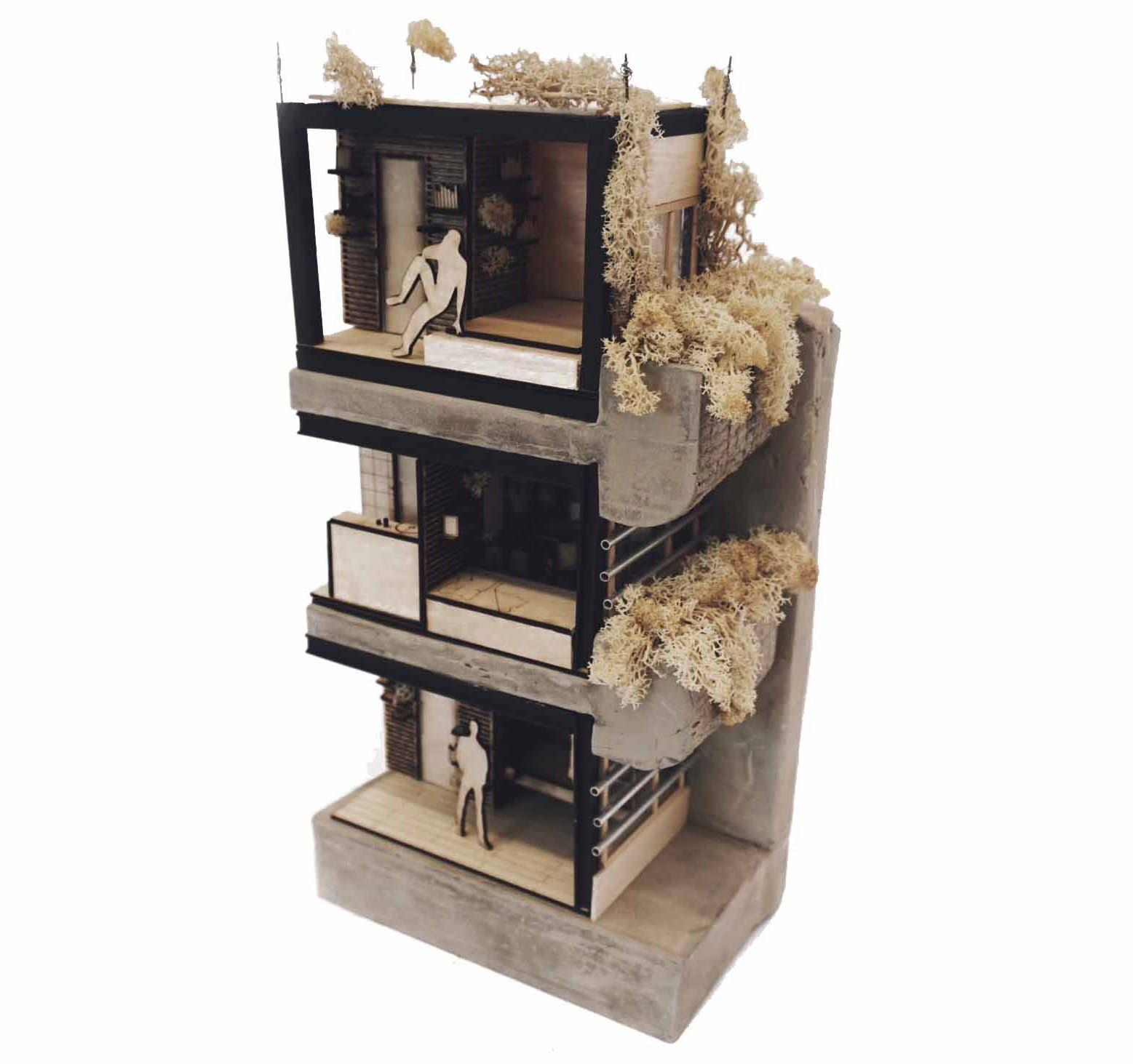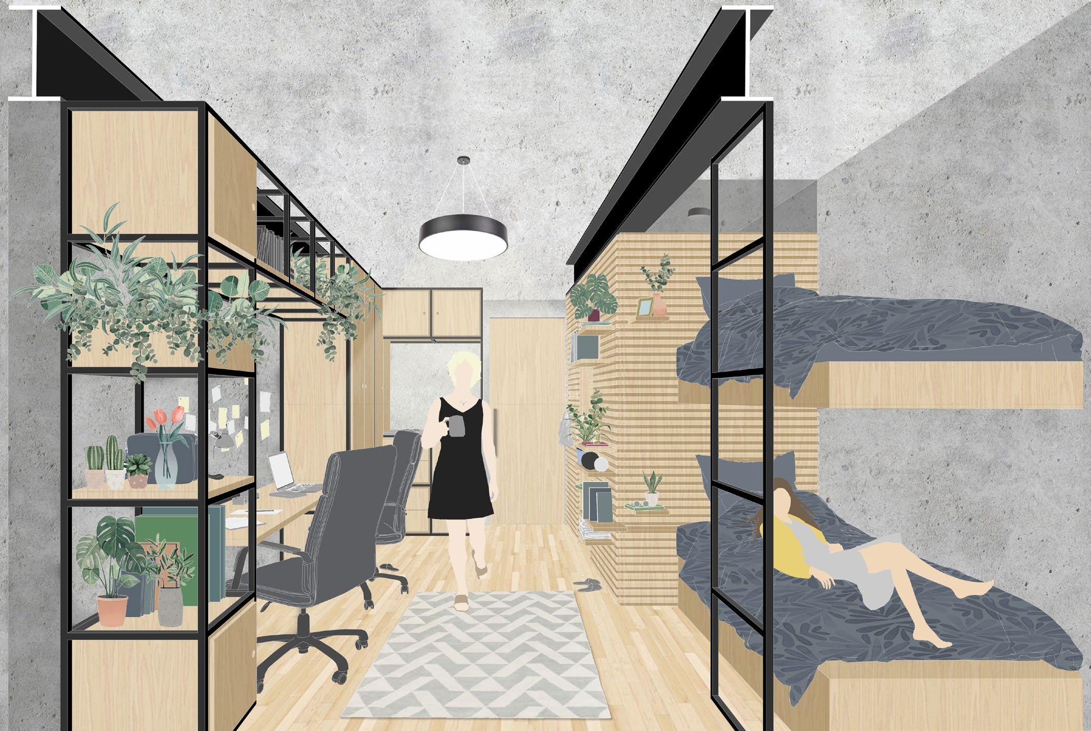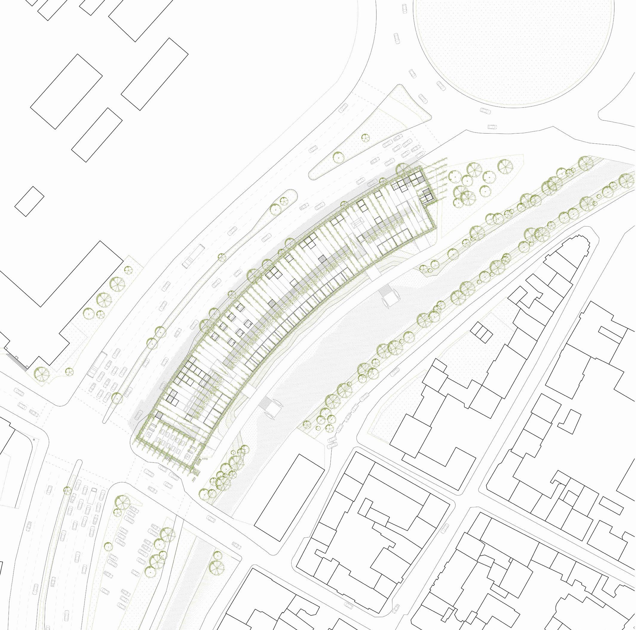 This underused parking garage is acting as physical barrier between the street and the natural element of the river and it’s greenish surroundings. Currently the best views of the river is being offered to the vehicles parked inside. The conversion of this building into a student house would socially activate the riverside and integrating it with the city itself. The outcome is a Student Hub designed according to the students preferences, focusing on the interaction between them.