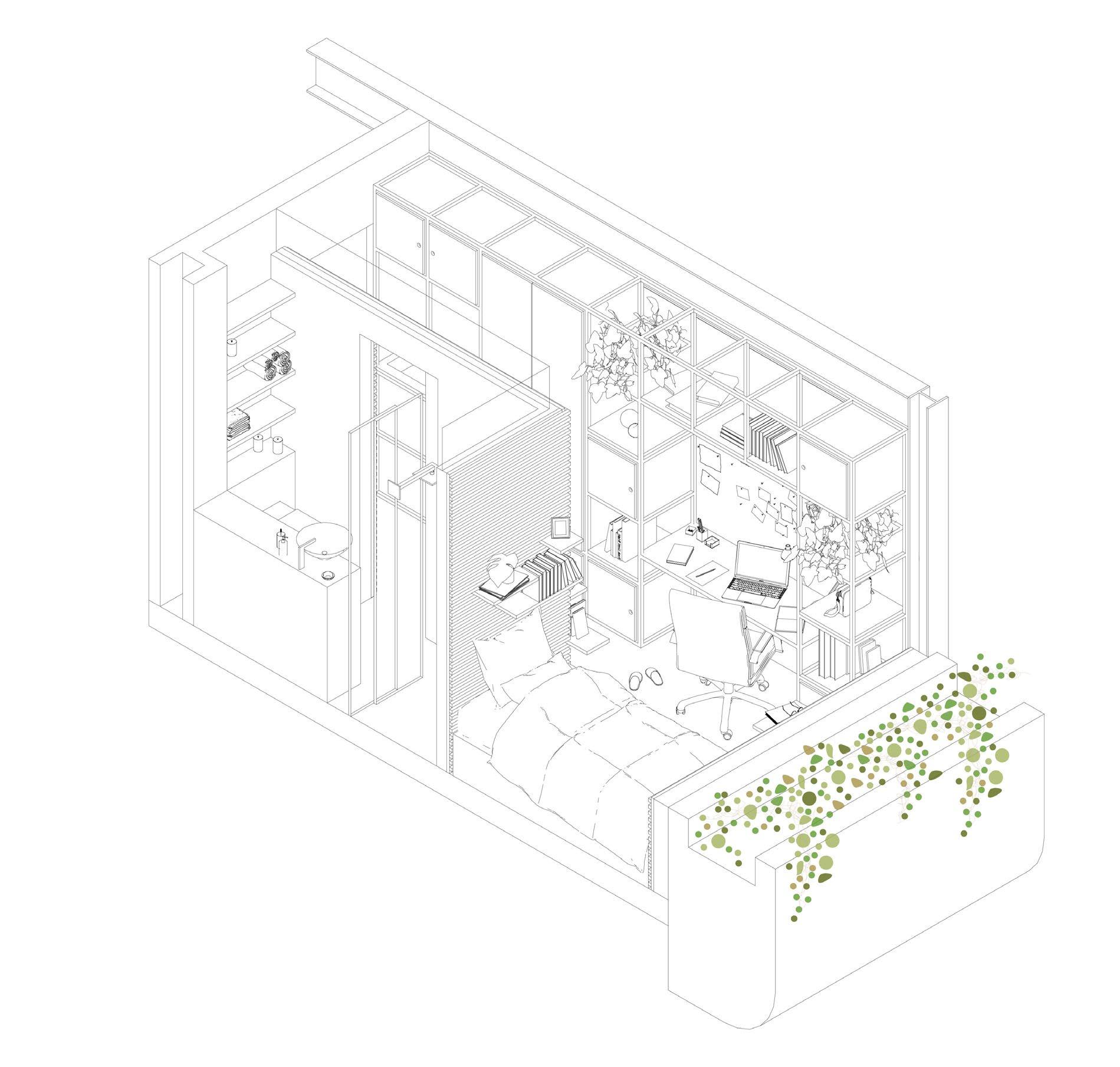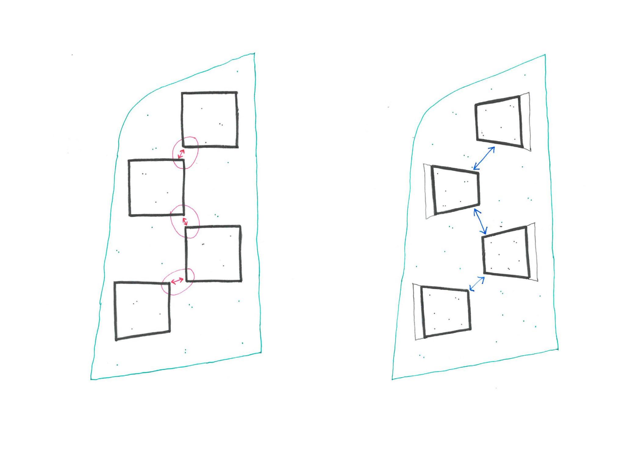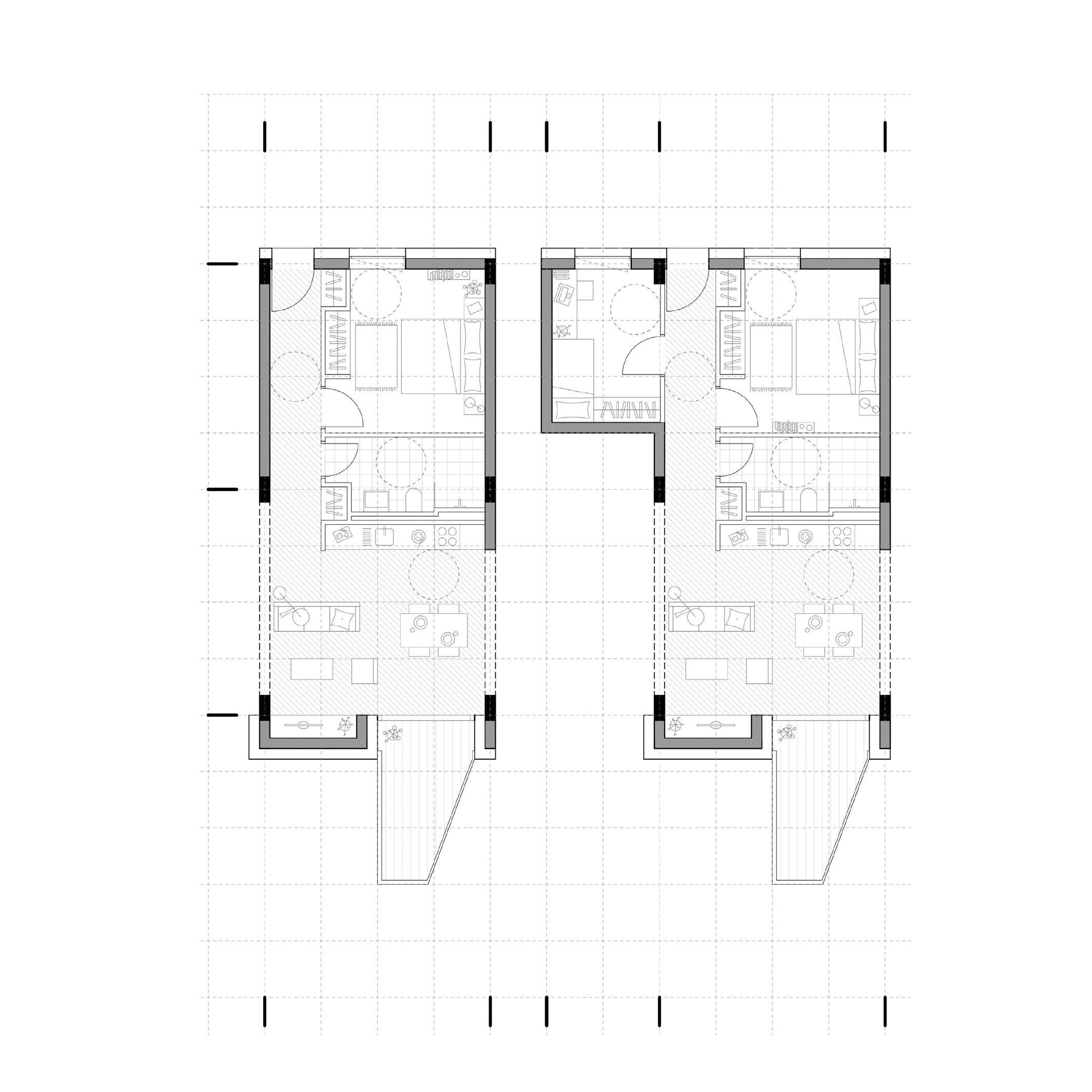 Entwurfsplanung: Entwicklung der Wohnungsgrundrisstypologie.
