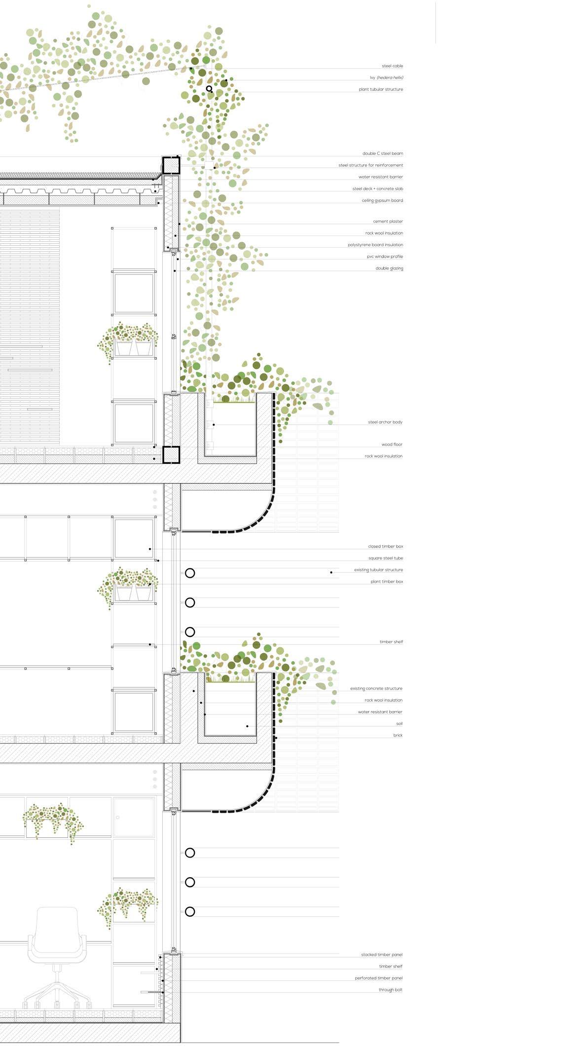Ausführungsplanung: Erarbeiten der Ausführungspläne M. 1:50 mit die angaben von Fachplanner und Detailplanung M. 1:5. Fassadenentwurf.