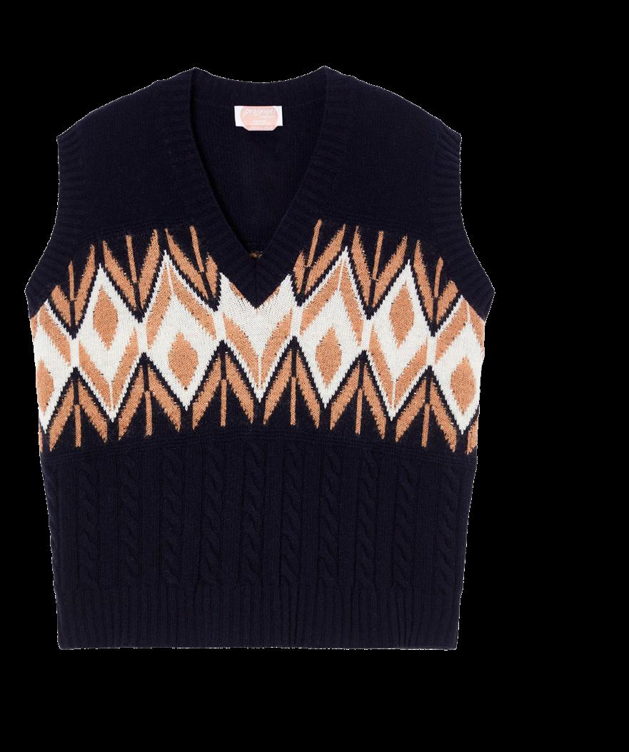 A impreziosirla, una bella scollatura a V e l’originale lavorazione a punto pannocchia, che le regala carattere.