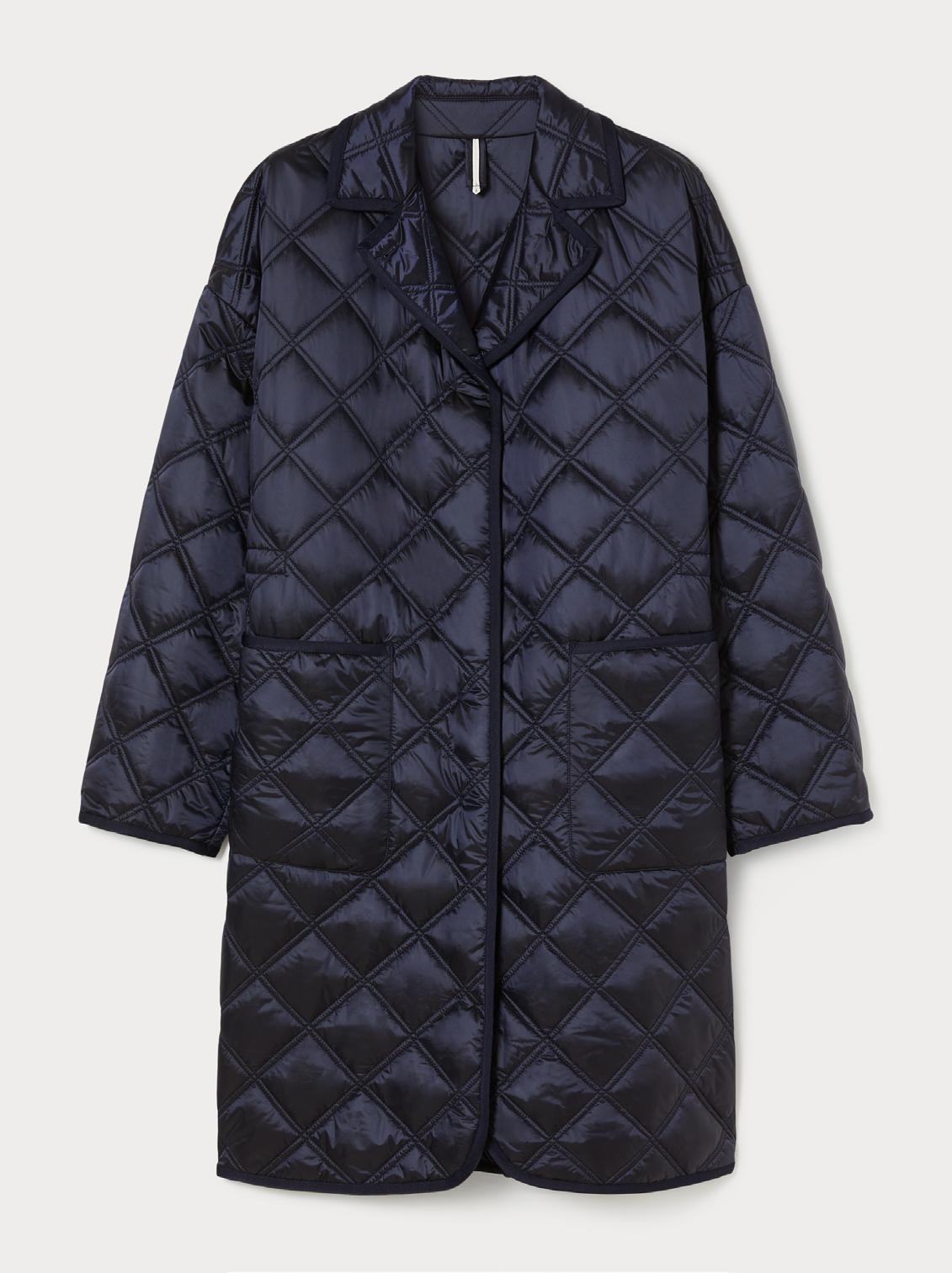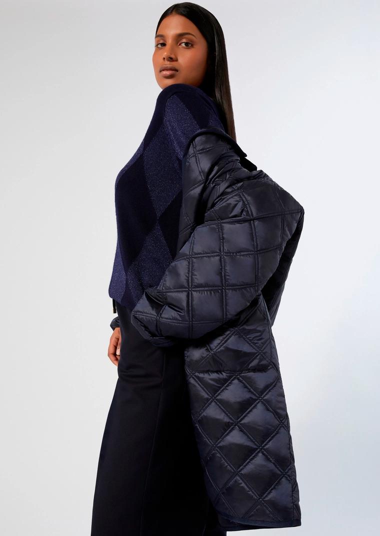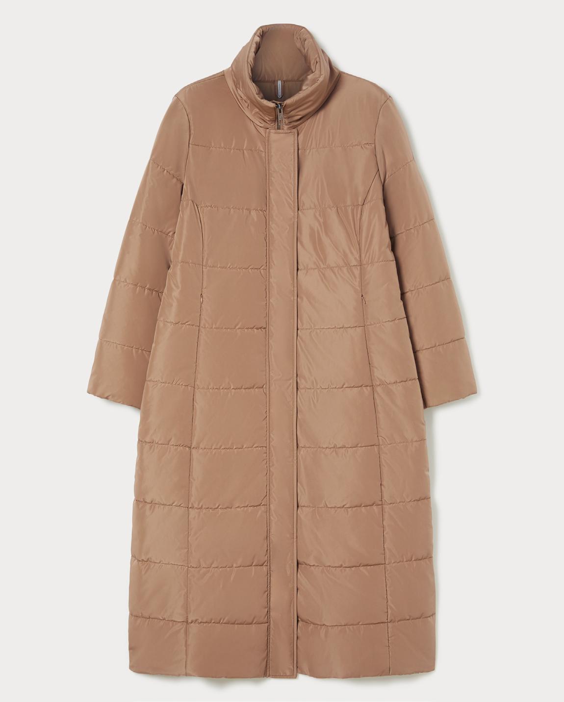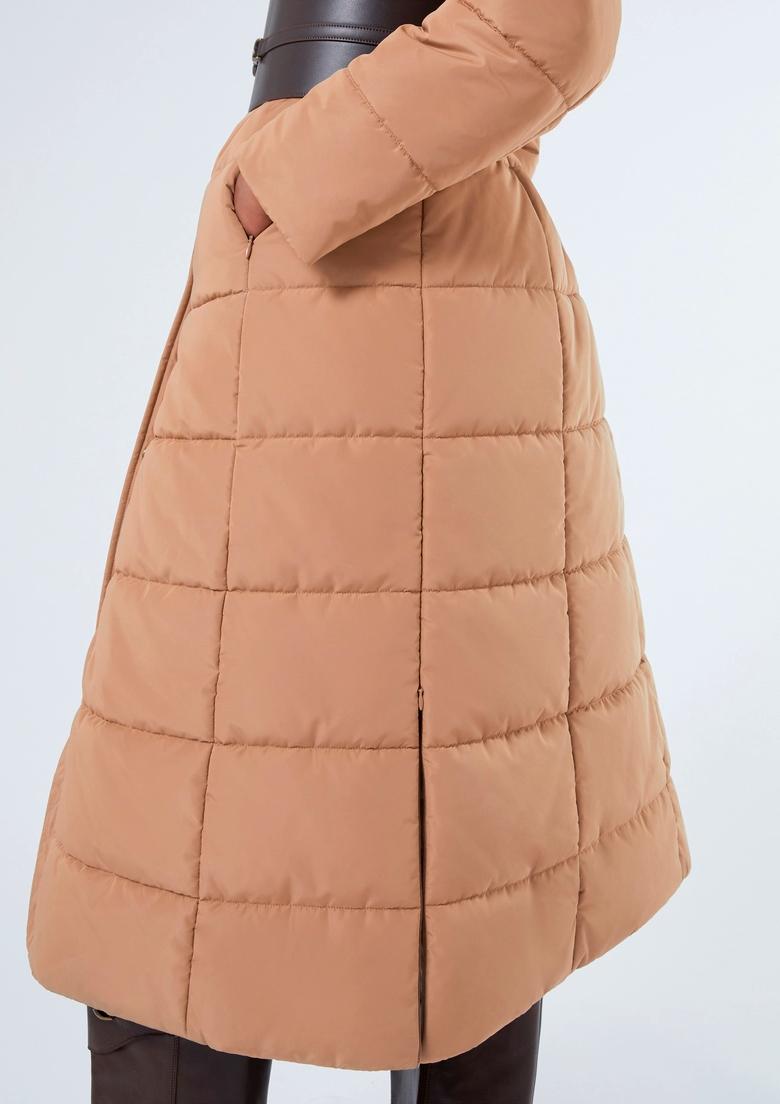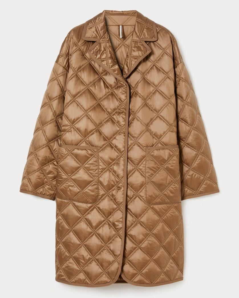 QUARK. L'imbottito lungo in taffetà antigoccia scivola con una linea svasata, avvolgendoti in una femminilità senza tempo. / Crafted from water-resistant taffeta, this long quilted coat flows with a flared line, wrapping you in enduring feminine charm.