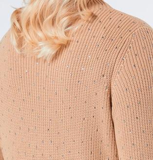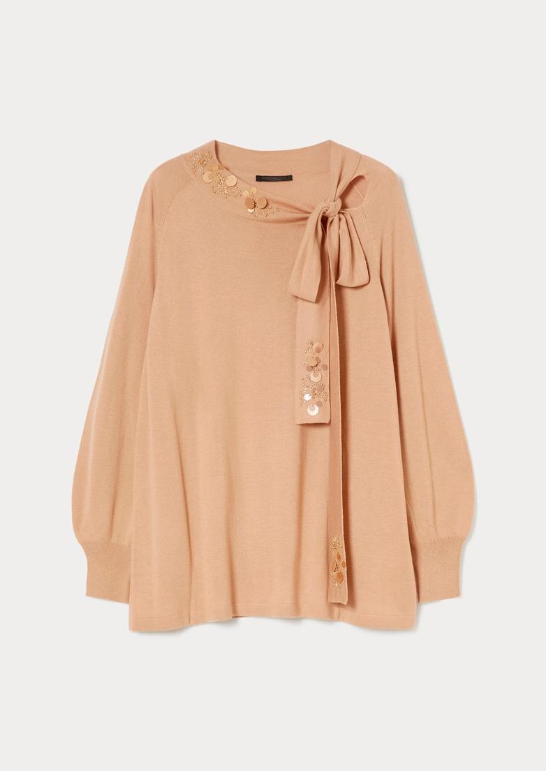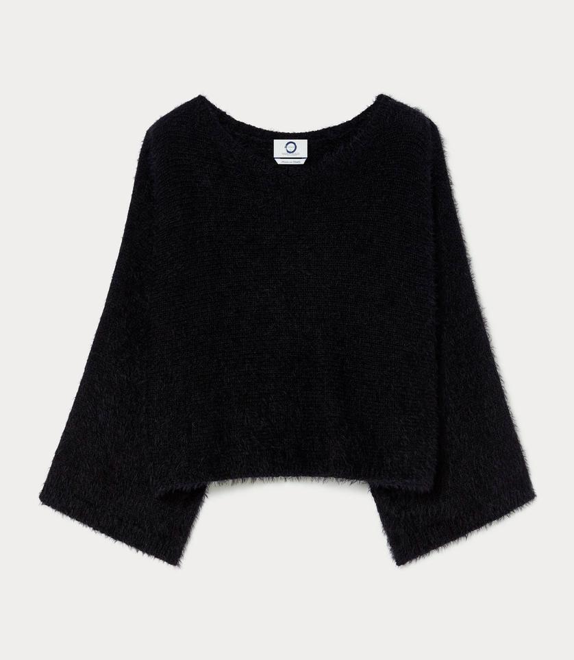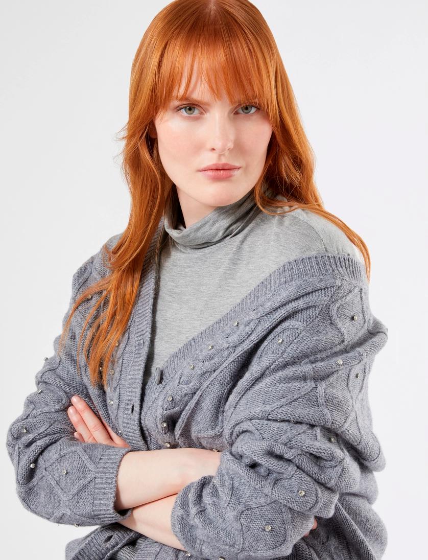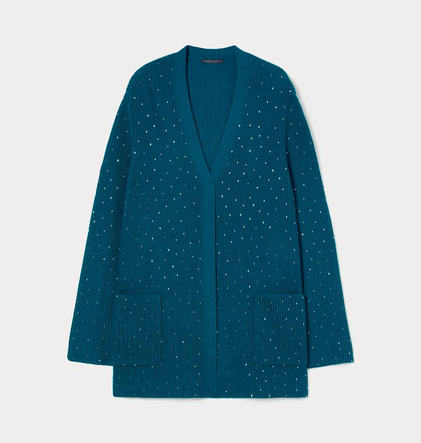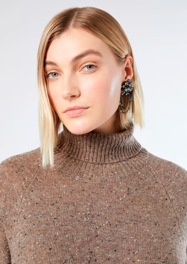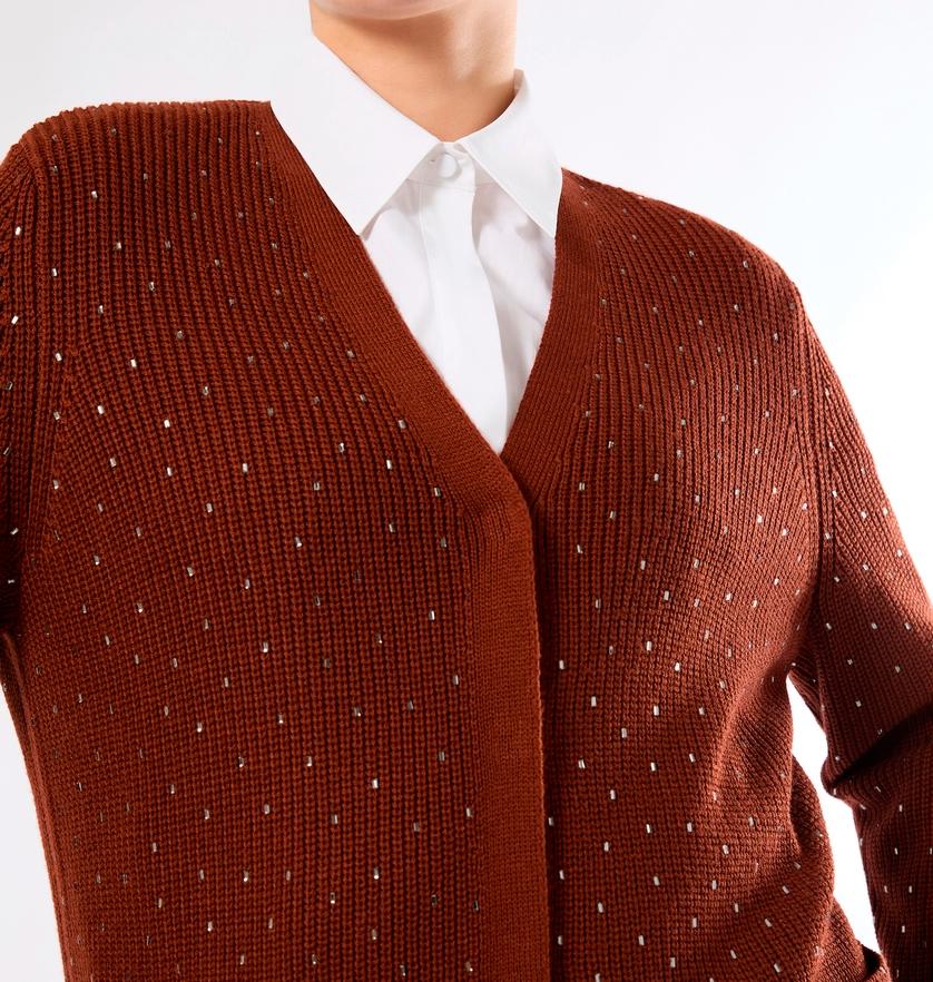 CONGO. La maglia con strass black diamond ti fa brillare con un glamour irresistibile, completando il look con la morbidezza avvolgente di un tocco cozychic. / Sparkling with black diamond rhinestones, this knit delivers irresistible glamour, finishing the look with a cozy-chic, soft embrace.