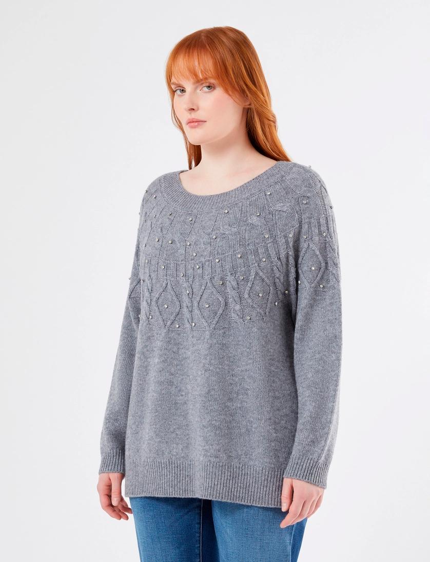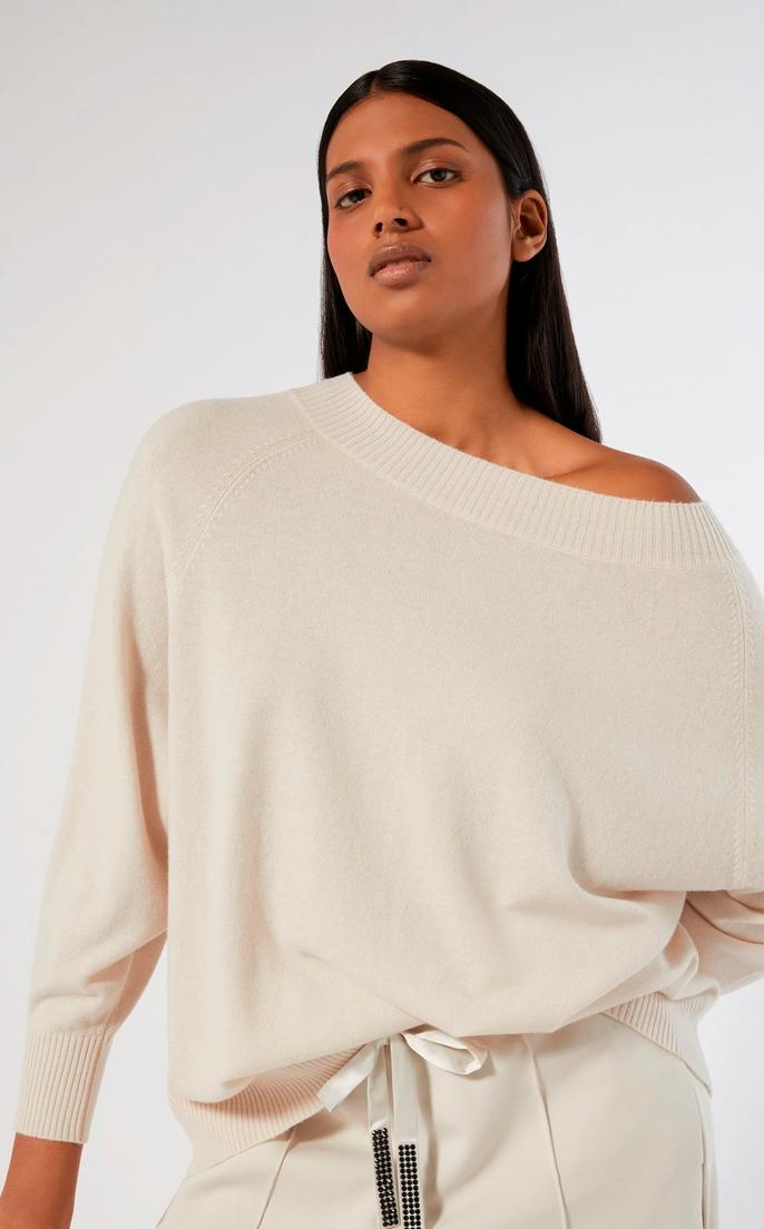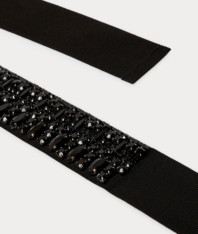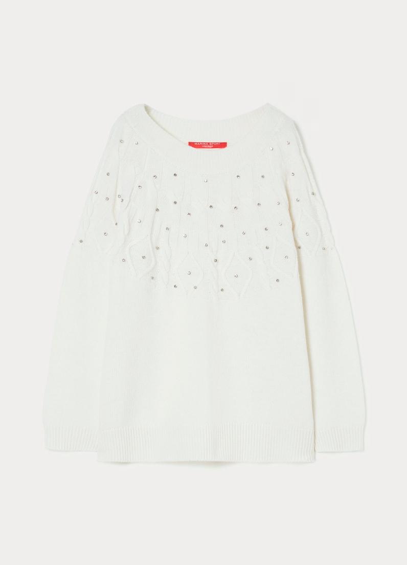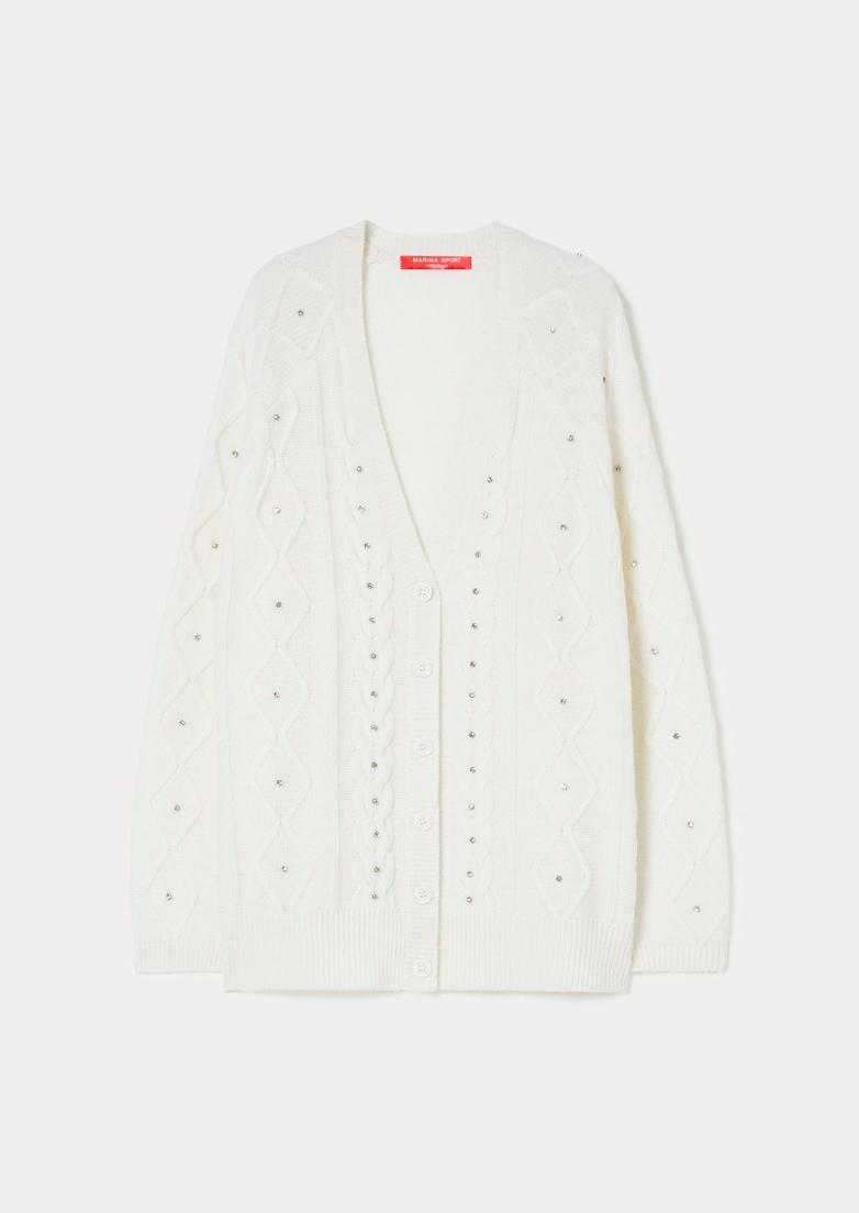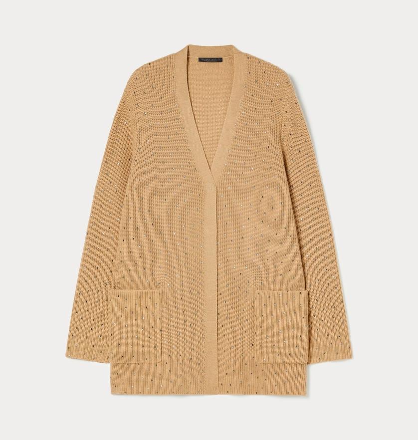 CONGO. La maglia con strass black diamond ti fa brillare con un glamour irresistibile, completando il look con la morbidezza avvolgente di un tocco cozychic. / Sparkling with black diamond rhinestones, this knit delivers irresistible glamour, finishing the look with a cozy-chic, soft embrace.